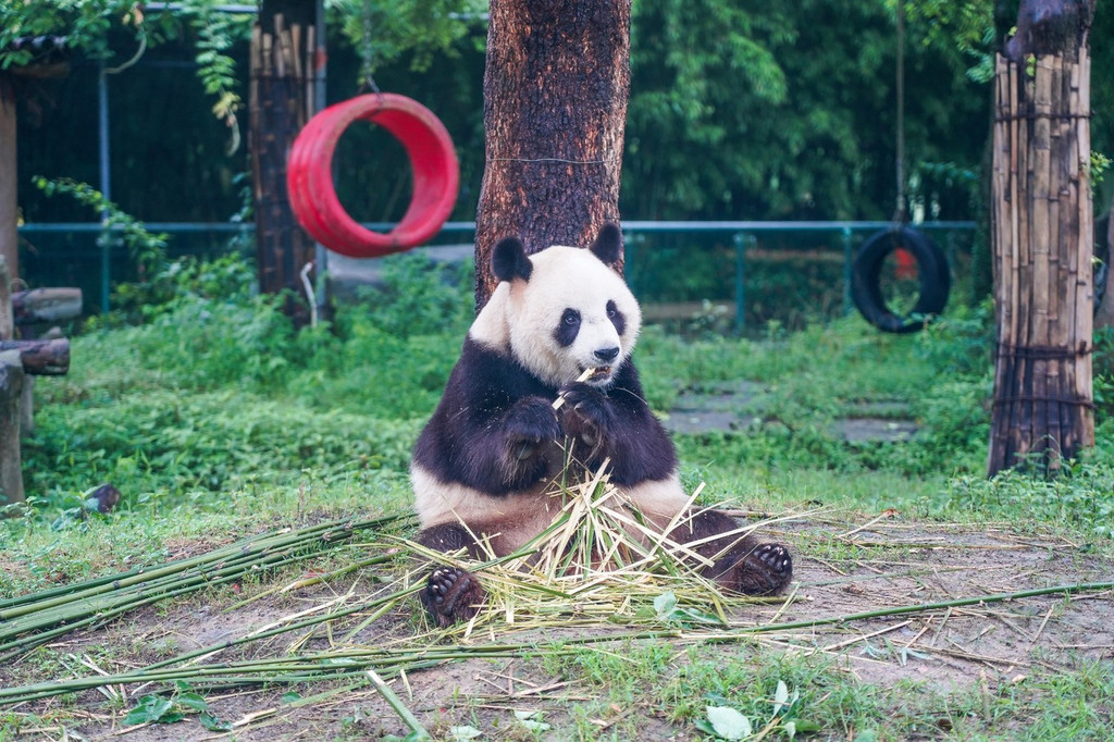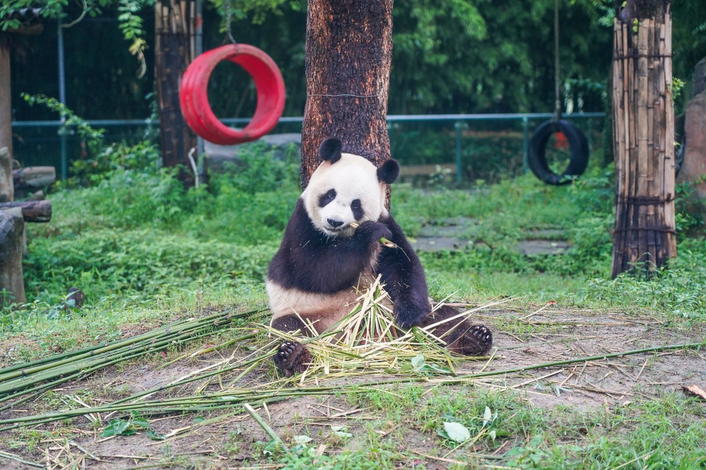 大熊猫是咱们 中国 的国宝,在每个动物园自然都是最抢眼的,它们拥有自己的“粉丝大军”,集万千宠爱于一身。把它们最爱的“小食”——竹笋远远的抛过去,它慢悠悠的寻味而来,不急不徐的坐下,开始享受美味咯