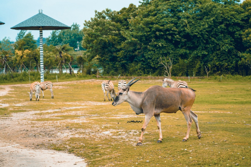 这里是一个模拟 非洲 生态的稀树草原场景,再现原始的自然风貌,可以欣赏到长颈鹿、斑马、羚羊、鸵鸟等 非洲 动物的风采。