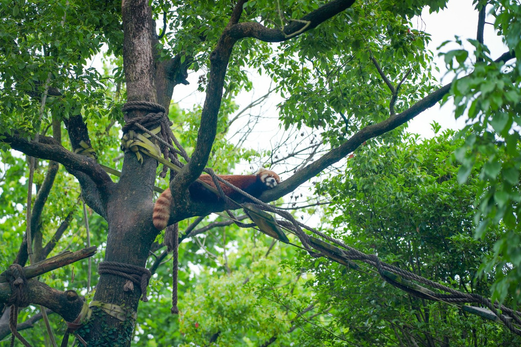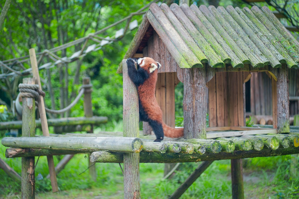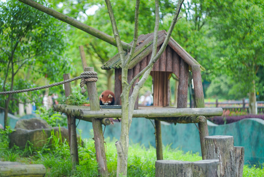 浣熊的对面就是小熊猫了,这里住着好几只小熊猫,虽然和大熊猫只有一字之差,不过长的完全不一样,住的可真是豪宅啊。