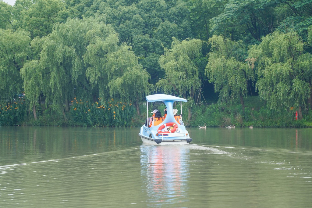 强烈推荐带着孩子来坐这个船游览,一艘船最多可以坐4个人,电力驱动的很好操作。