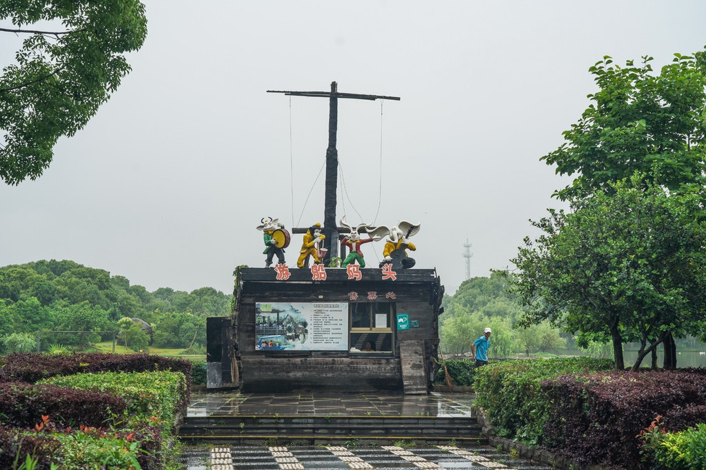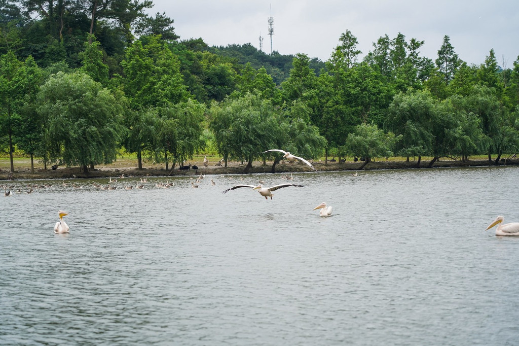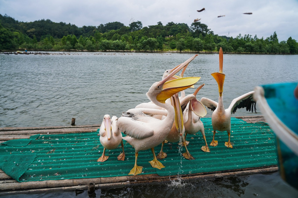 看完丛林奇境,讲解员就会引导我们来到湖边,无缝衔接的就是“鹈鹕展翅”了。