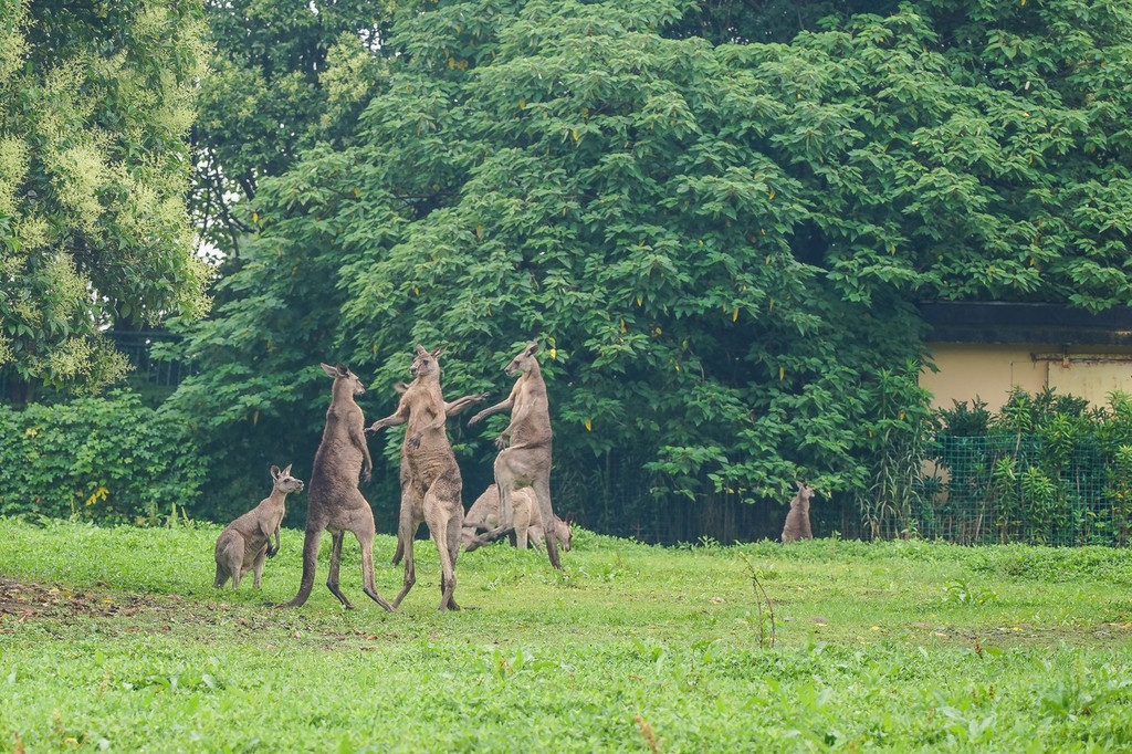 所有的动物看起来都很放松的在自家领地玩耍,最可爱的就是袋鼠啦! 现场给我们表演起来了拳击比赛。