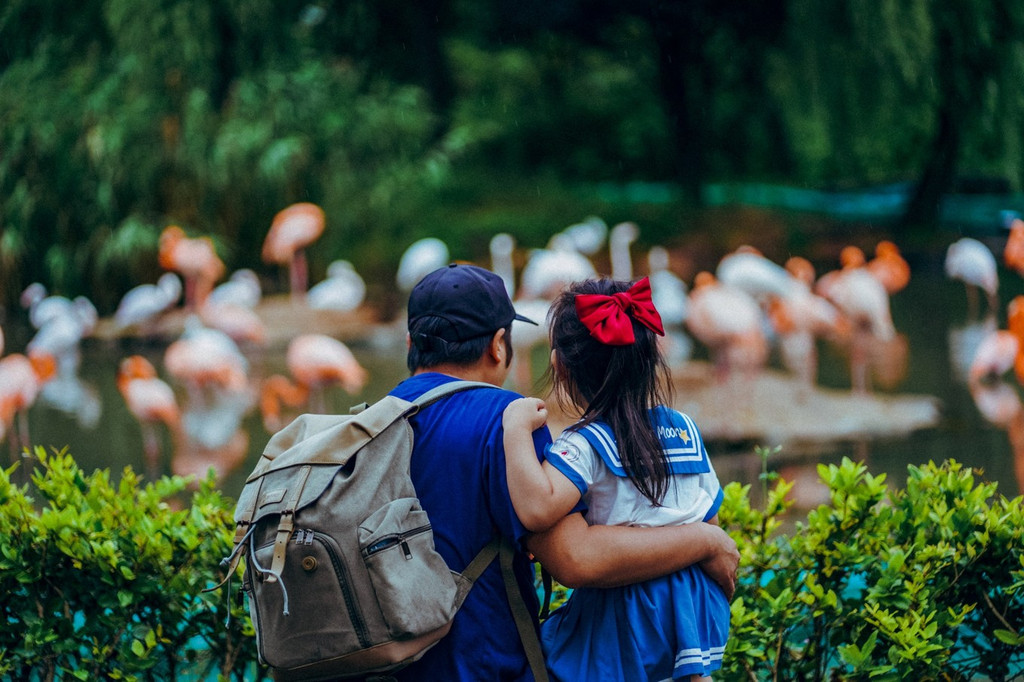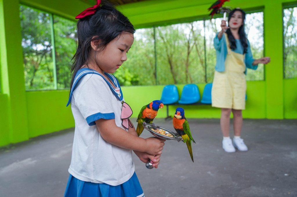 最酷的就是让孩子亲子上去和鸟儿互动了。