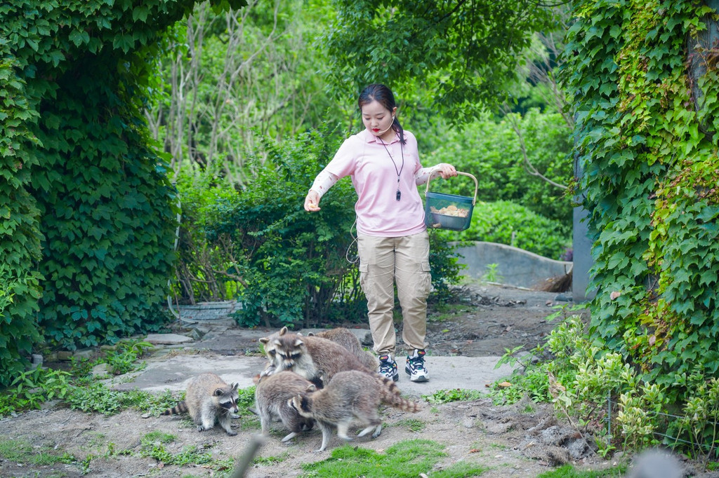 讲解完了之后,游客也可以自己购买食物(注意不能带自己的食物哦)去喂小这些小浣熊,非常棒的体验。