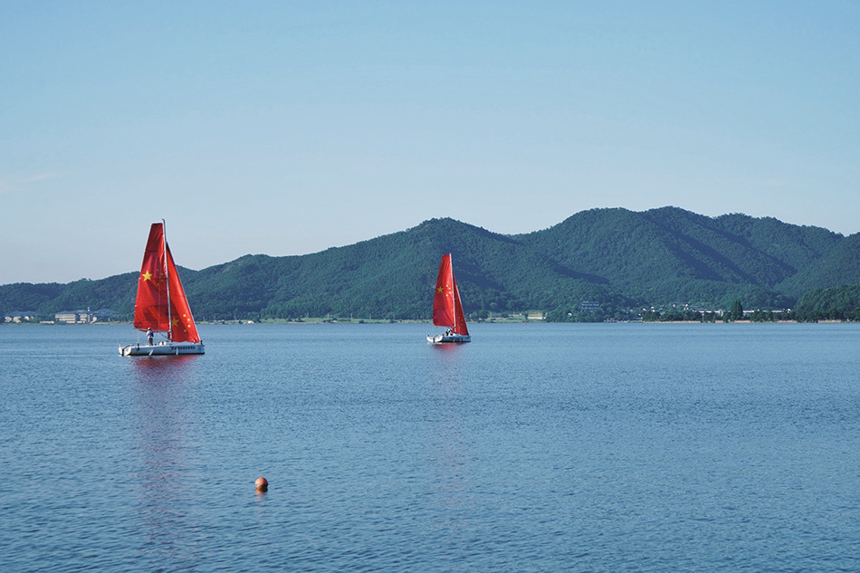离酒店步行十几分钟的湖边有个逸帆航海俱乐部,预订JUN酒店的客人可以选则有帆船体验的套餐,入住期间可以享受坐帆船游览东钱湖美丽风光的难得体验。