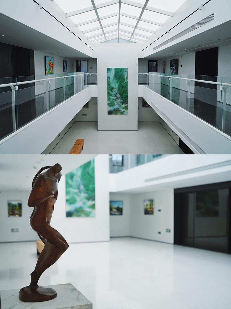 经过大堂后是一个玻璃顶的艺术长廊,墙上挂的画作都是业主的私人珍藏,展出的艺术品会不定期更换。