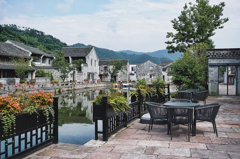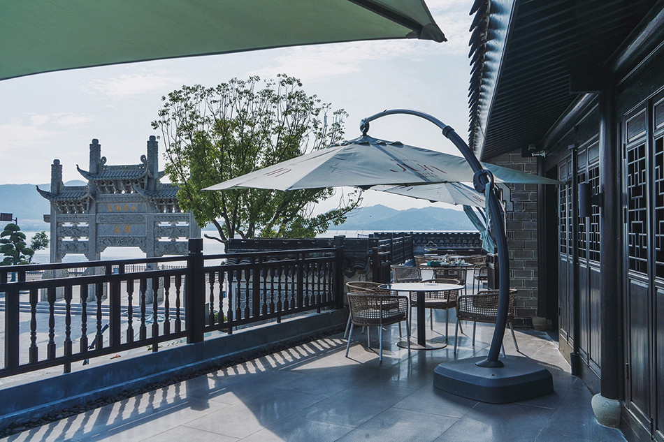 酒店有个休闲临水平台,举目远眺,韩岭水街的水乡风景尽收眼底。
