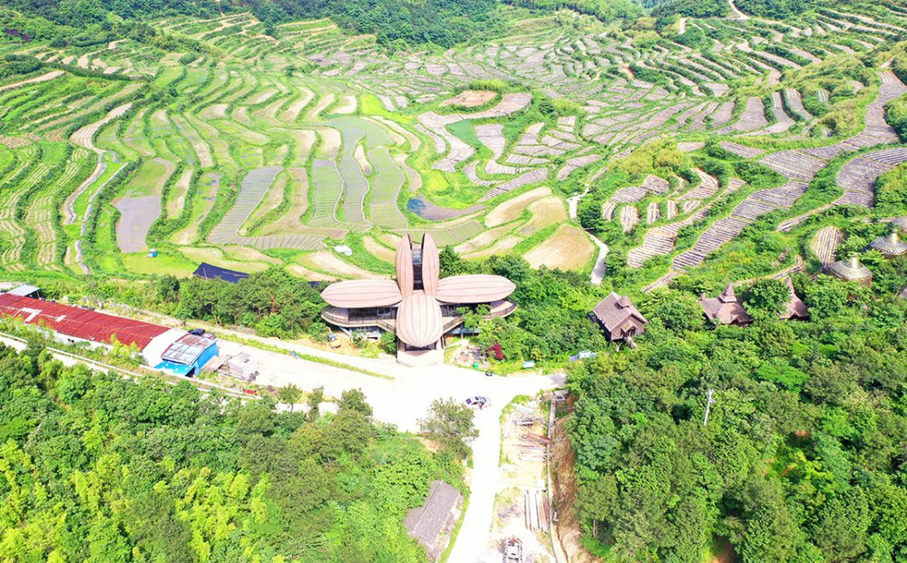 大雷山梯田旁边开设有高雾生态农庄,造型别致,临窗可望梯田,层叠绵延。