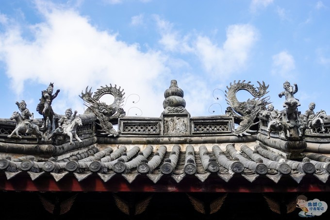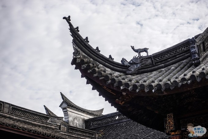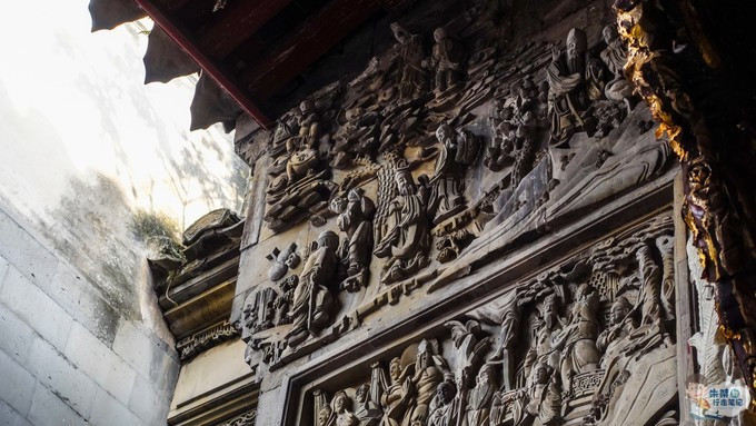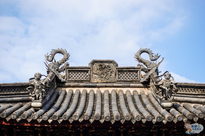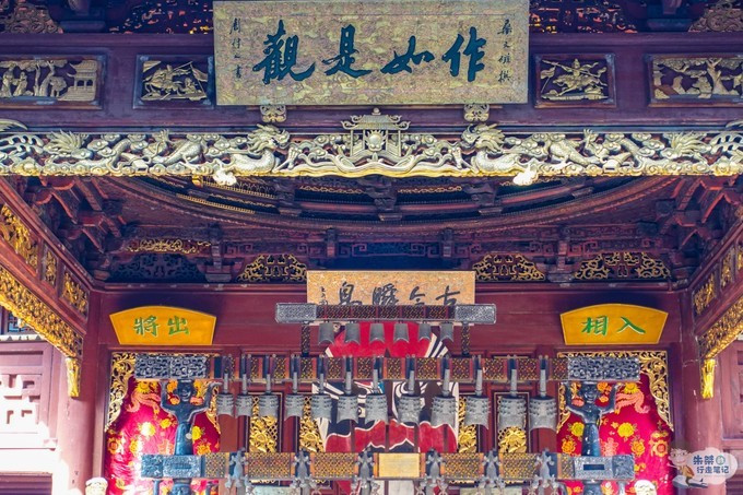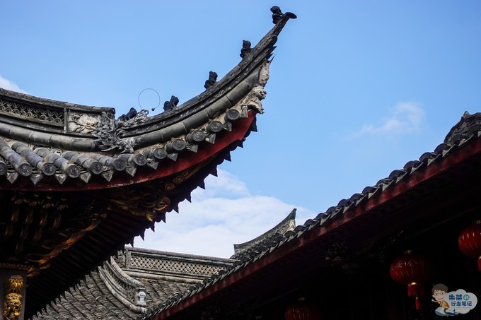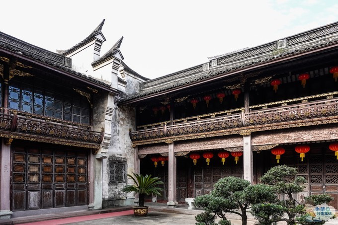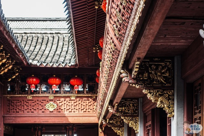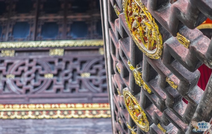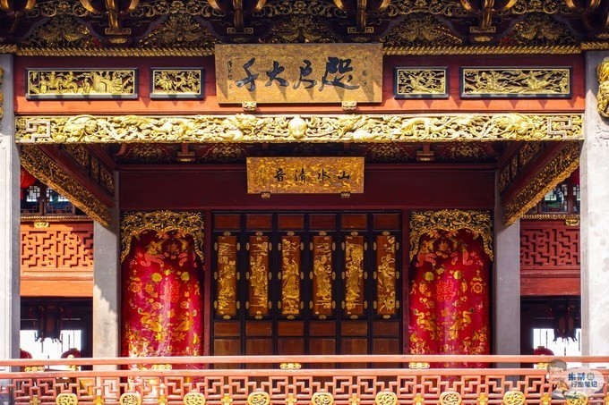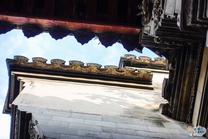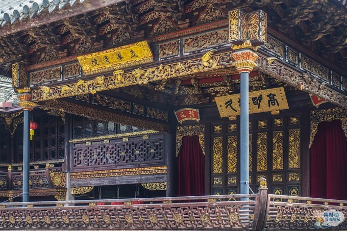 错落有致的黛瓦白墙,古朴斑驳的青石路面,古朴庄严的宫门大殿,金碧辉煌的前后戏台……将浙东近代木结构建筑及 宁波 地域文化特色展现的淋漓尽致,尤其建筑上那些巧夺天工的砖雕、石雕和朱金木雕,历经百年仍光彩照人,那1000多件朱金木雕,更是堪称 宁波 地方工艺之杰作。