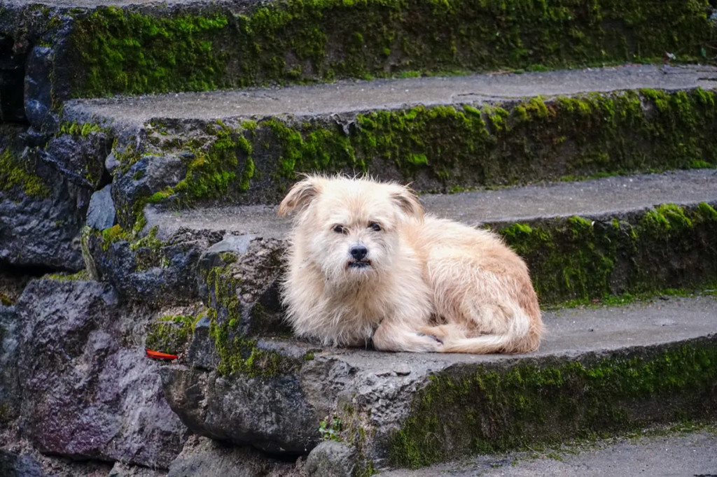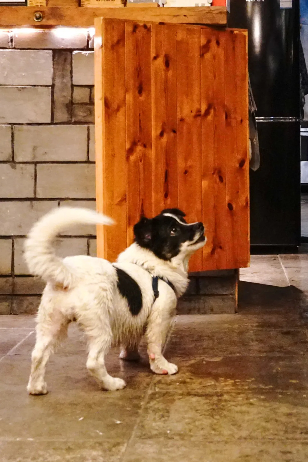 一只好欢快跑到你脚前嗅嗅转身又奔去管家主人身边然后又跑回来的小狗, 它叫小八。