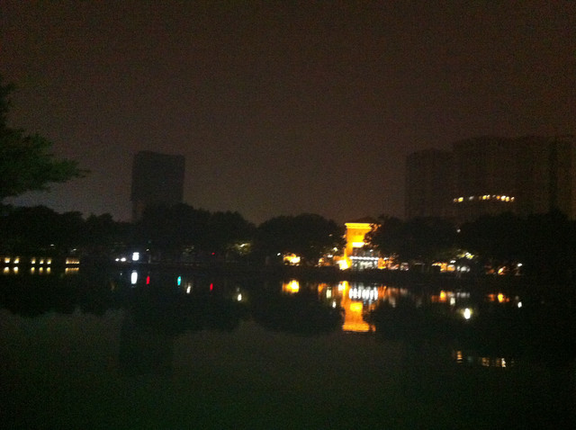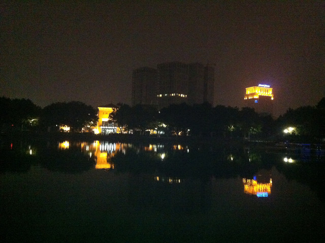 后来我们又挑了一个晚上来了月湖,适逢下了一场雷雨,我们干脆就在湖边的长廊里坐下听雨声。看着漂亮的霓虹灯,吹着凉爽的月湖风,一个晚上的时间又这么愉快地度过了。