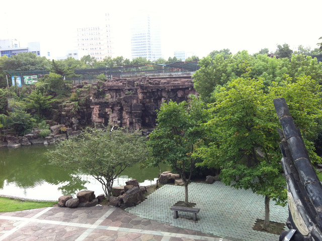 有一个女生坐在池边的石头上,脱了鞋子在玩水。我们看得兴起,也学着她的模样脱了鞋,把脚浸到水里,真是凉爽!