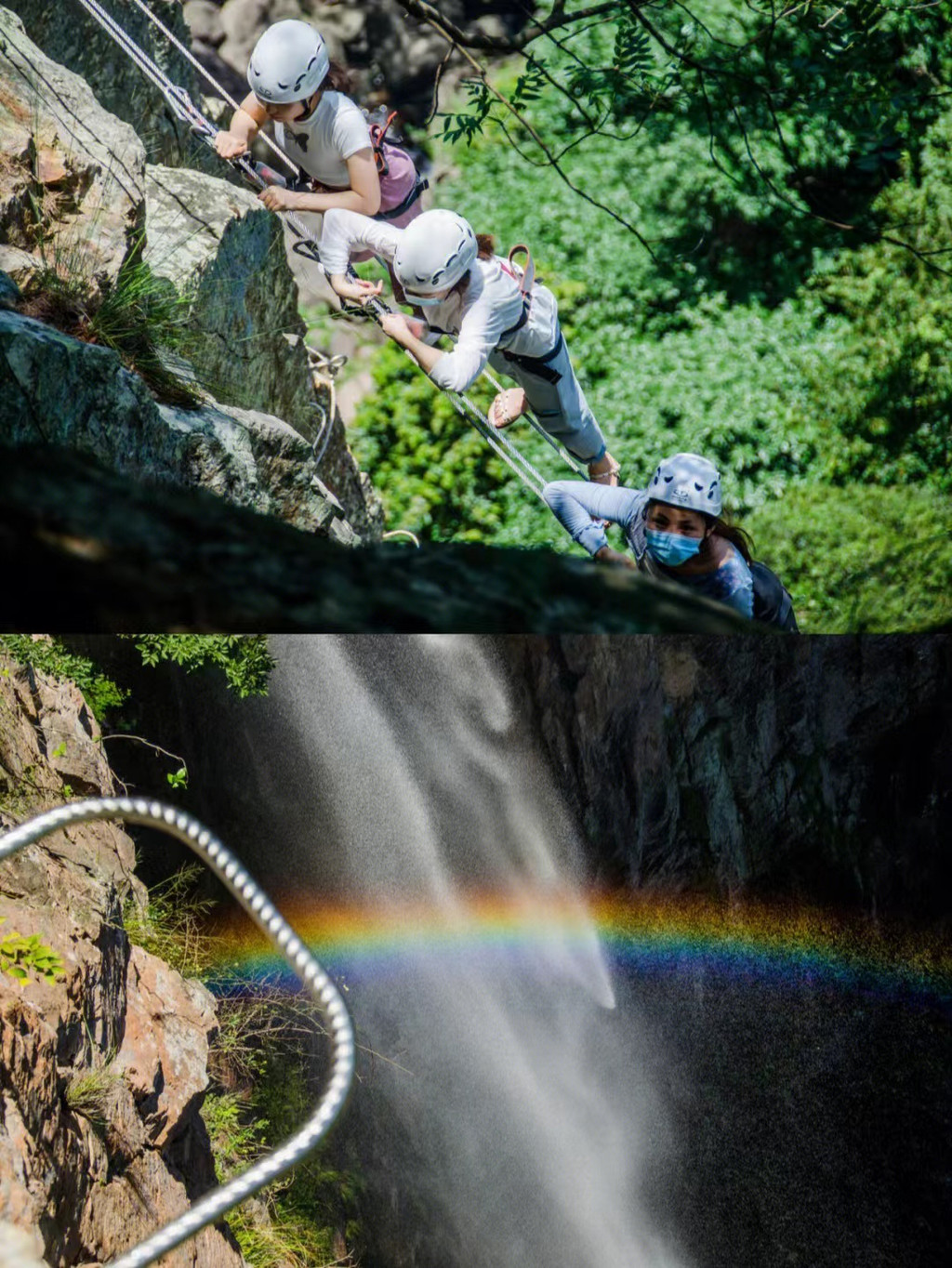 徐凫岩瀑布被誉为浙东第一瀑,而飞拉达攀岩也是宁波独一份,两百米高空的峭壁上挑战自己,尤其是飞拉达C线可以横穿瀑布,全国罕有