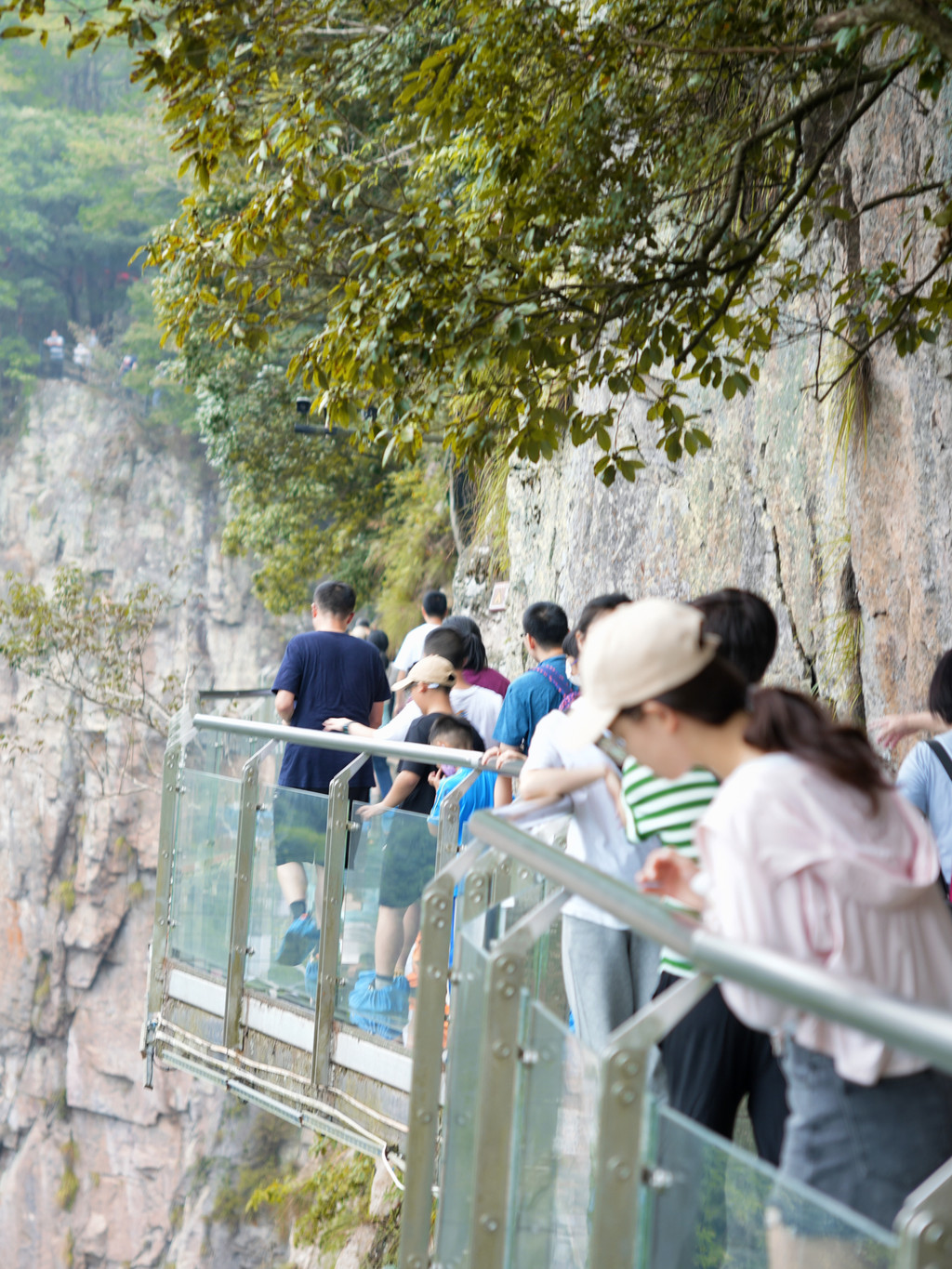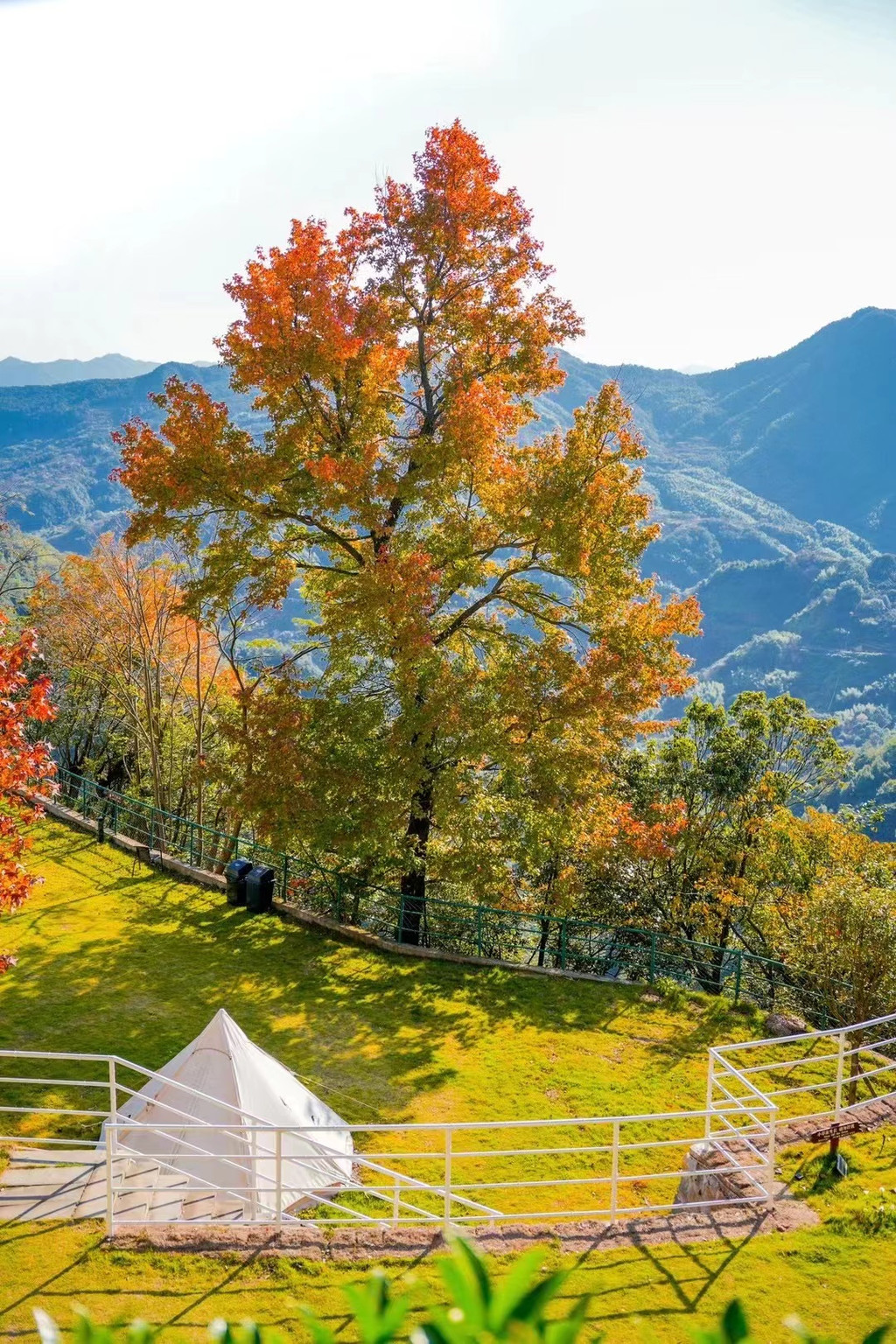 玻璃栈道一定要去走,不仅能体验惊险刺激,还能看到山下景色和大片红枫,赏秋不能错过。不想人挤人建议住一晚房车,庭院内就能看到秋景,非常舒适。