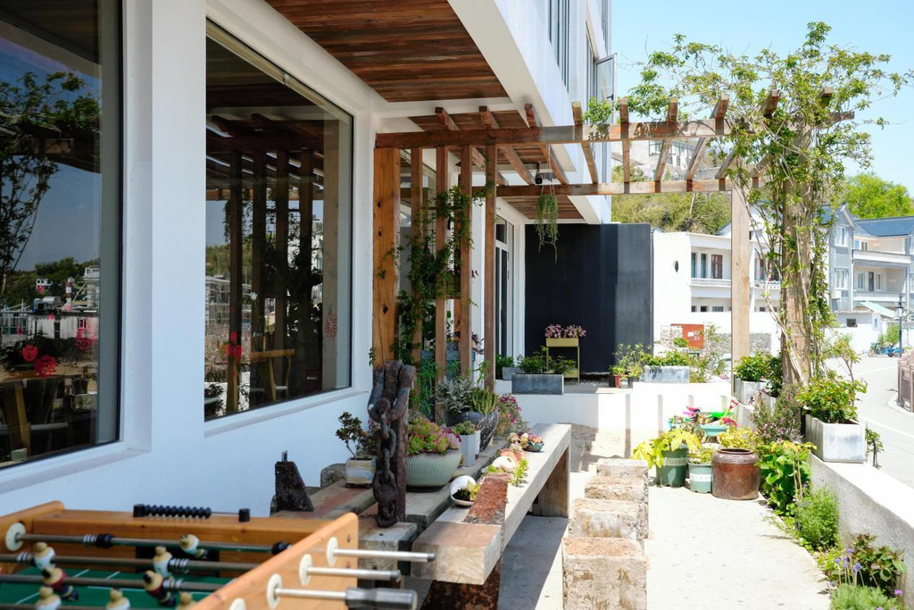 潮烟里民宿和朝山慕海是同一个老板,我们还顺便去参观了下。我们待在书吧里喝着咖啡,品下午茶,翻阅书吧里的书籍,偶尔停下来看看窗外的海景休憩一下。