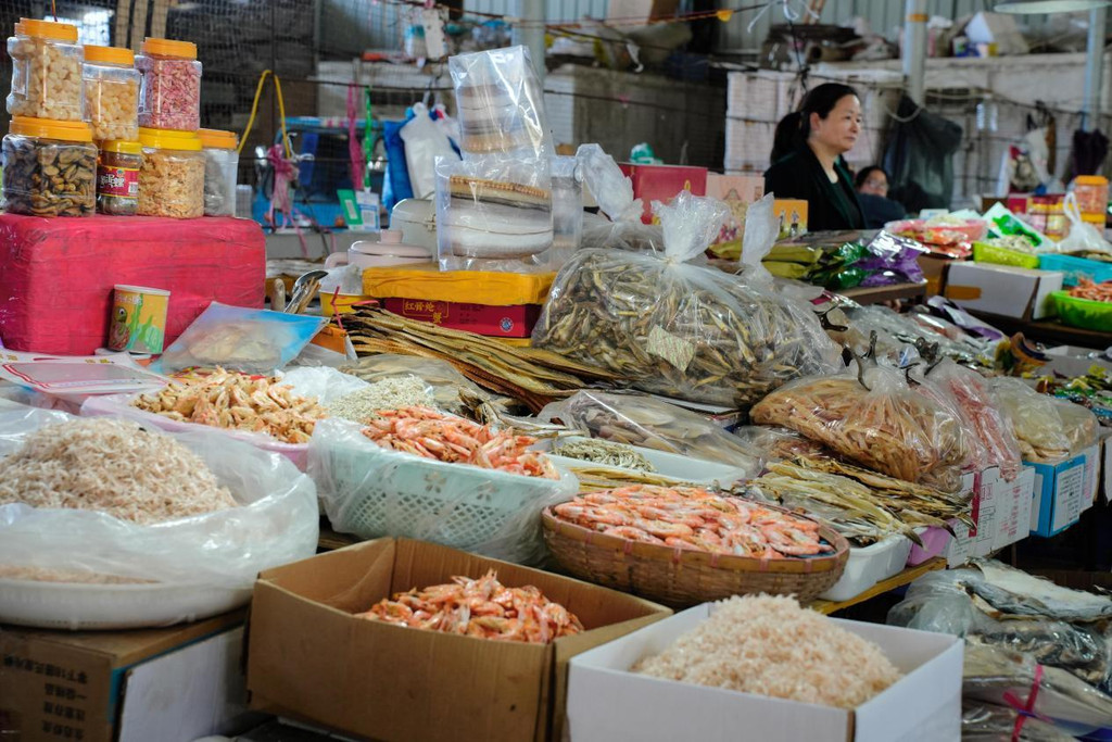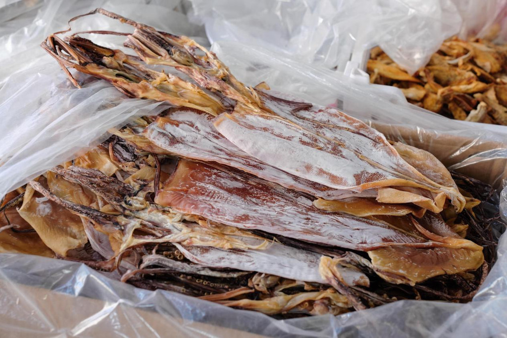 吃完可以去码头的干货市场买点海鲜,自己吃、送给盆友都很好。储存久,可以做饭也可以当零食干吃。大虾干可以直接干口吃,带壳脆、肉韧有嚼劲。还有其他的鳗鱼干、墨鱼干什么的,就不一一安利了。