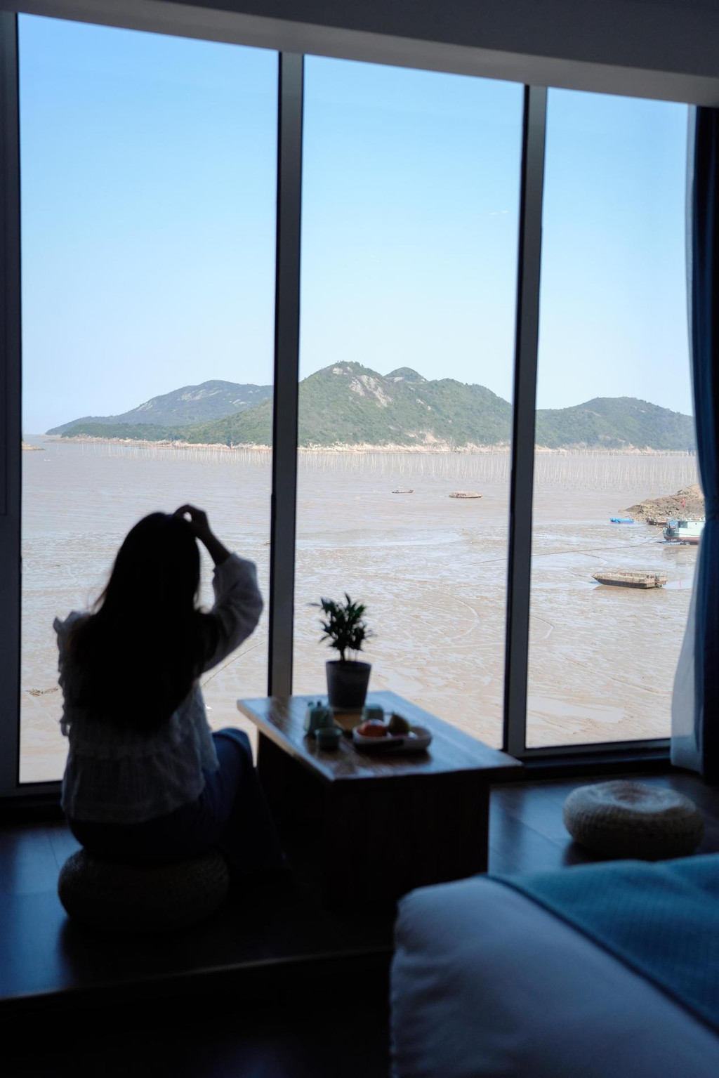 杭州出发3h抵达石浦,直接入住朝山慕海民宿,白瓦青砖的新中式风格,伫立在海岸边,远远望去,干净舒适,特别治愈。