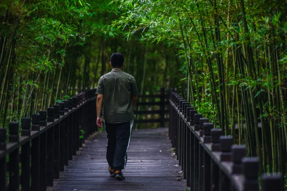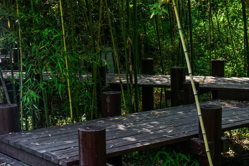 山野君在拍这张照片的时候大概是下午的17:20分左右,竹海栈道的光线很弱了,但是环境却更好。行走在栈道上的人们为整个翠竹园添加了诗意般的韵味。像翠竹园这样的地方,除了可以洗肺之外,还可以拍人物大片,拍人像的话我估计特别的仙。