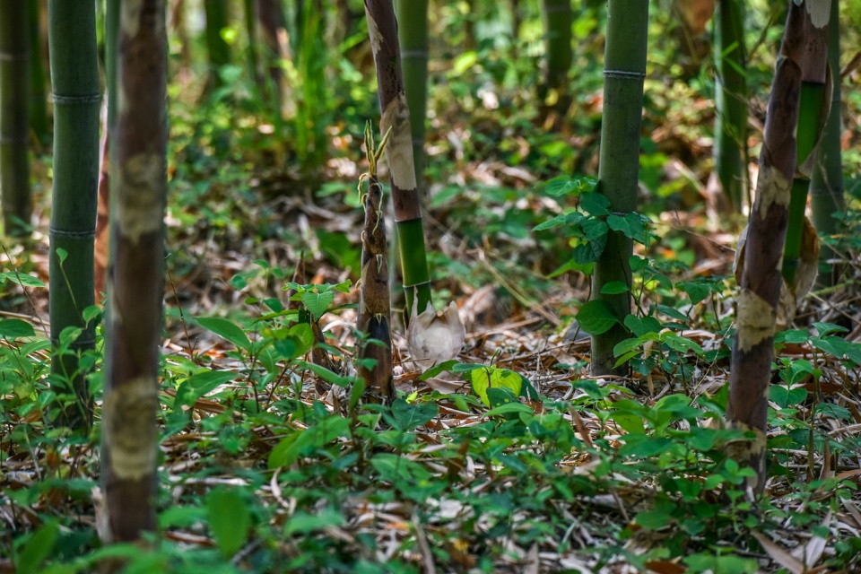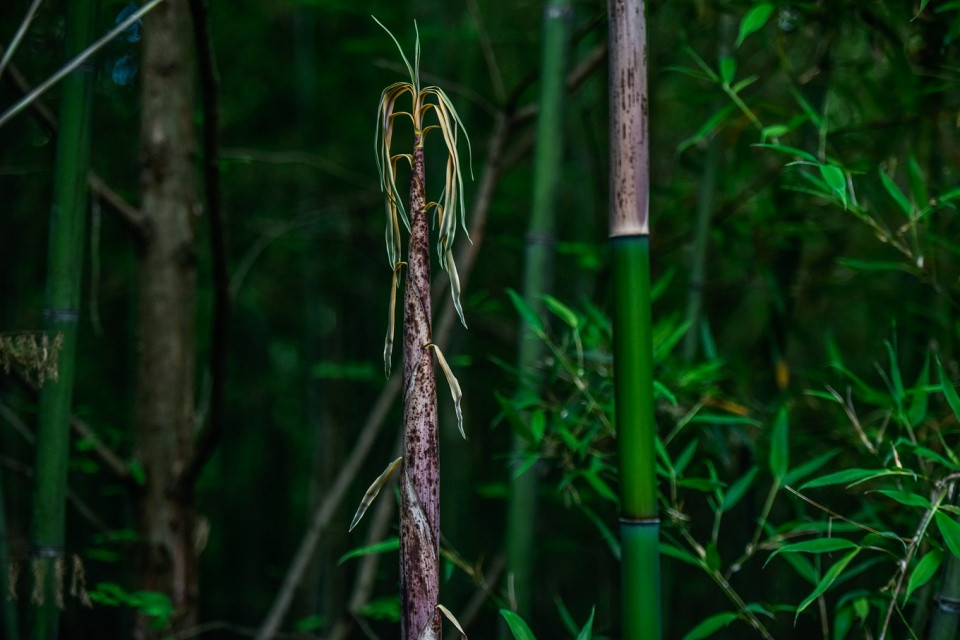 受到光照、气温、湿度的影响,竹园里还有一些竹笋还在继续生长中,与苍翠欲滴的青草一起,组合成了童话般的画面,美的太过于不真实了。不过,我很喜欢这种感觉!