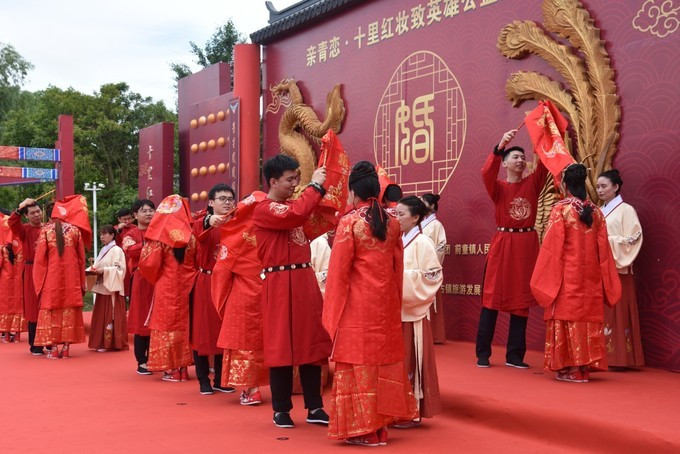 5月23日,由共青团 宁海 县委、 宁海 县文化旅游集团、 前童 镇人民政府联合主办,钱 江都 市频道和 宁海前童 古镇旅游发展有限公司承办的“亲青恋•十里红妆致英雄公益集体婚礼”在 前童 古镇隆重拉开帷幕,续写疫情中未完成的爱情故事,11对来自各条抗“疫”战线上的新人身着红色婚服,在古镇一起携手步入婚姻的殿堂。