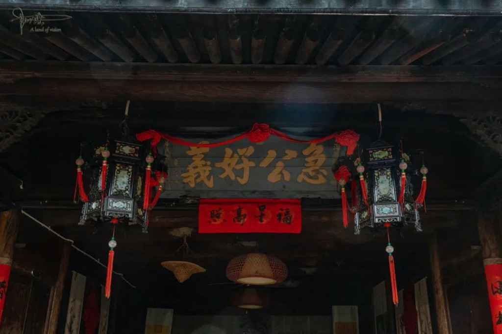 高大粗壮的庭柱、独一无二的海马鸿梁、保留众多的宗谱、寿屏、皇帝圣旨、匾额、对联、祖像、古籍等,门窗匾额的一首首诗词,一篇篇家训和祈盼吉祥的话语无不反映了浙东民居深空邃的文化韵味和昔日的繁华大粗族群落。