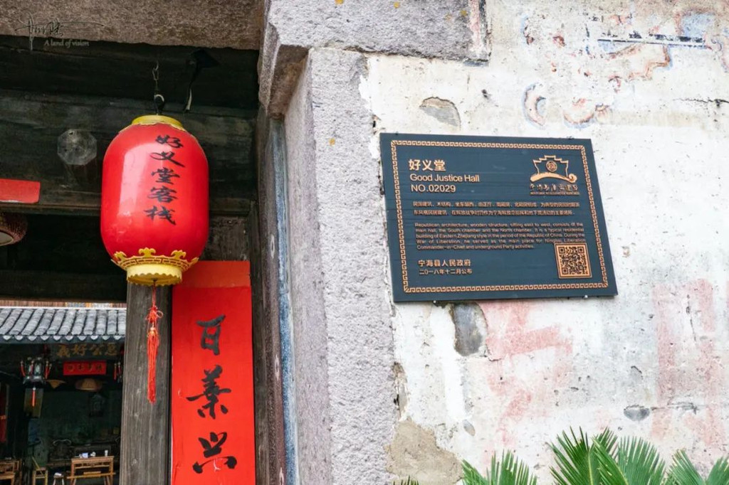 黛青瓦粉白墙的道地(四合院)大概有157座,这些民居都极具浙东风格。听人介绍,古镇最兴隆的时候,有亭3座,庵3处,书院12处,祠堂31座,庙13座,节孝坊表2座,旗干架2对,3百年以上古木15株。