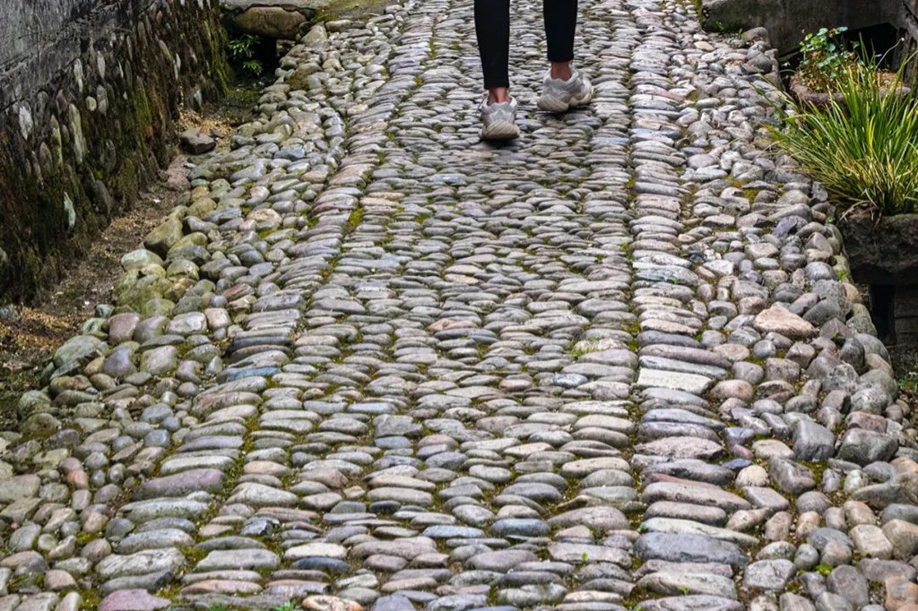 镇子里的大街小巷无数,旁边还有潺潺水溪流过,路面则是用白溪特有的溪石铺就而成,人踩在上面感觉很舒适,如果有兴致,还可以脱鞋行走,起到按摩足底的作用。一些人迹稀少的角落,台阶上布满青苔,似乎一年四季,都是如此葱翠。