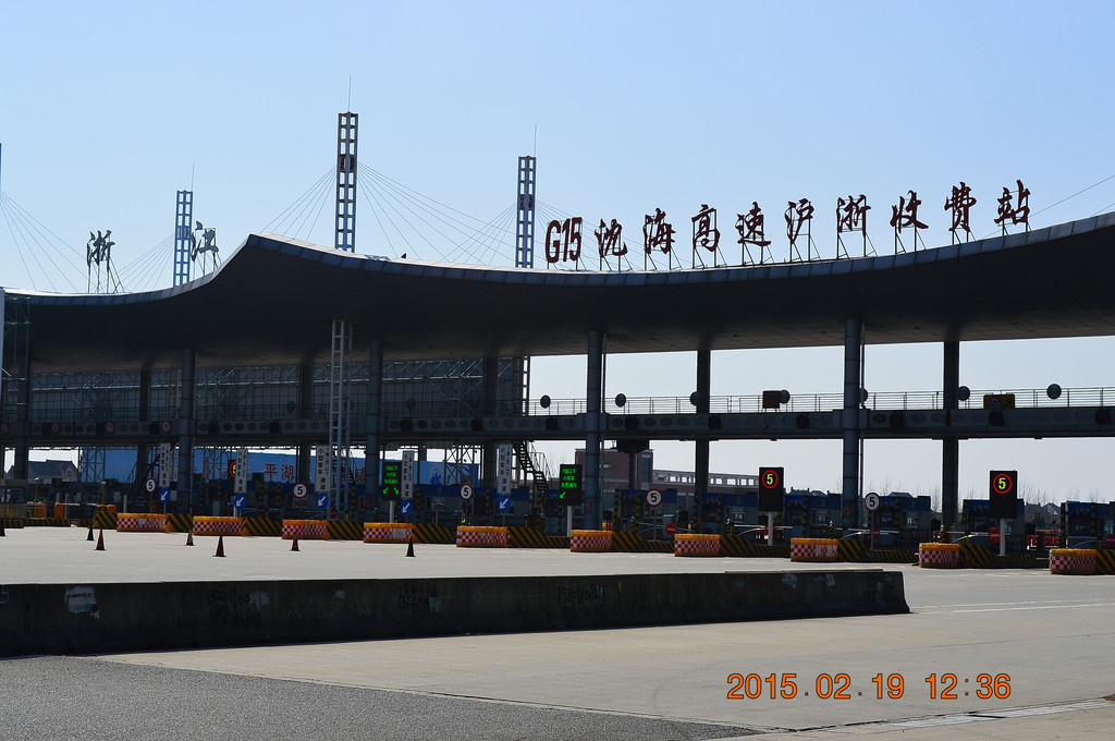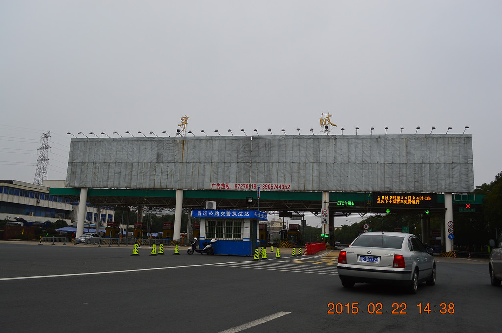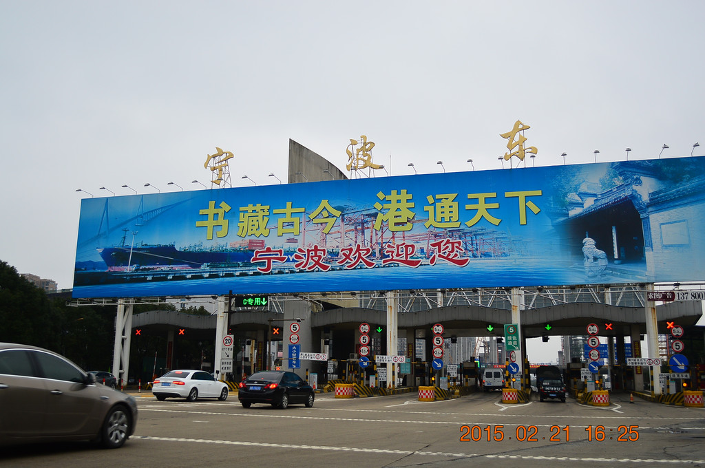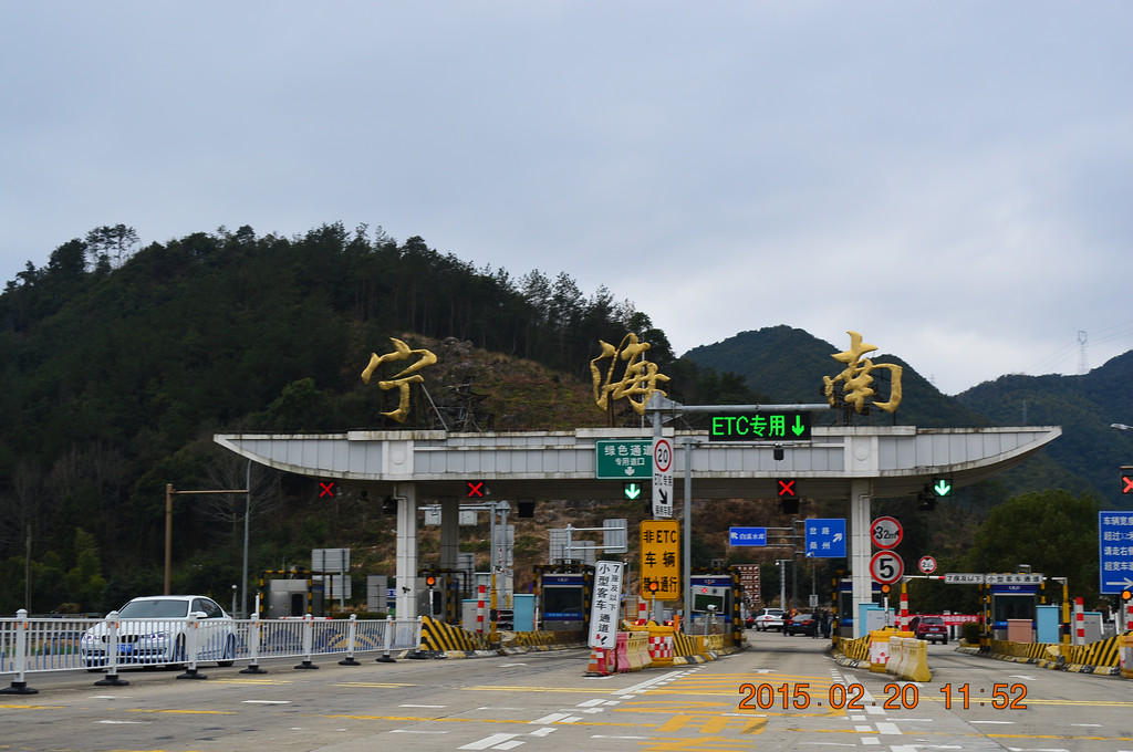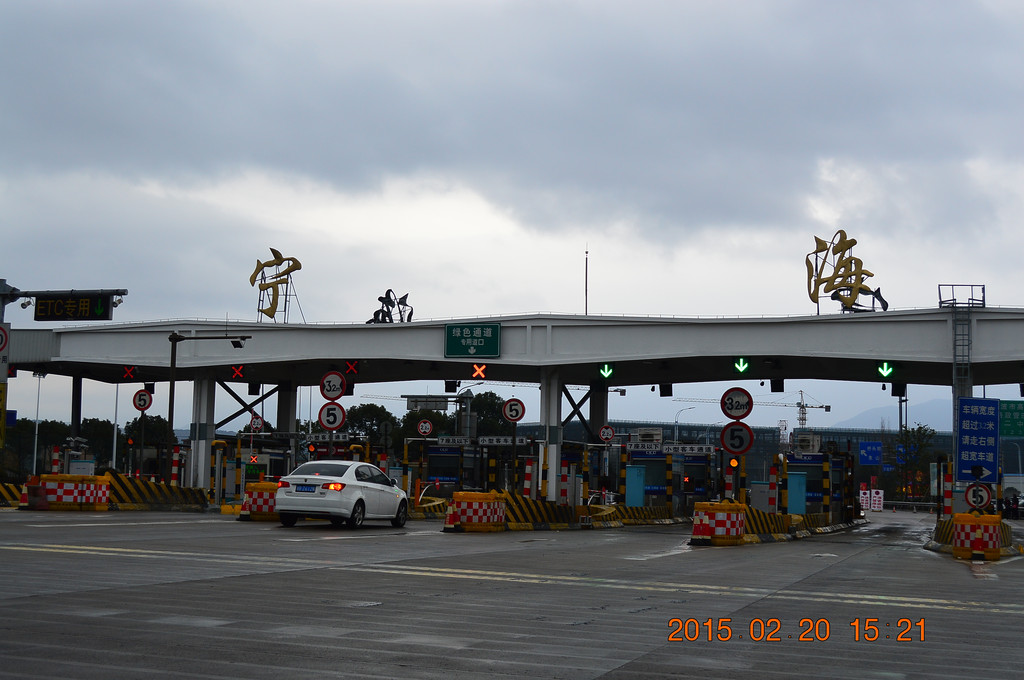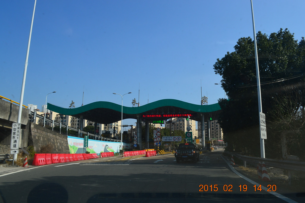 驾车上高速后发现,这个高速进出口比较特殊,只能往杭州方向,而没有往北仑方向的匝道。于是,在前方的段塘收费站下高速,掉头重新上高速往北仑方向。好在春节长假免高速费,只是多跑了10公里路。
