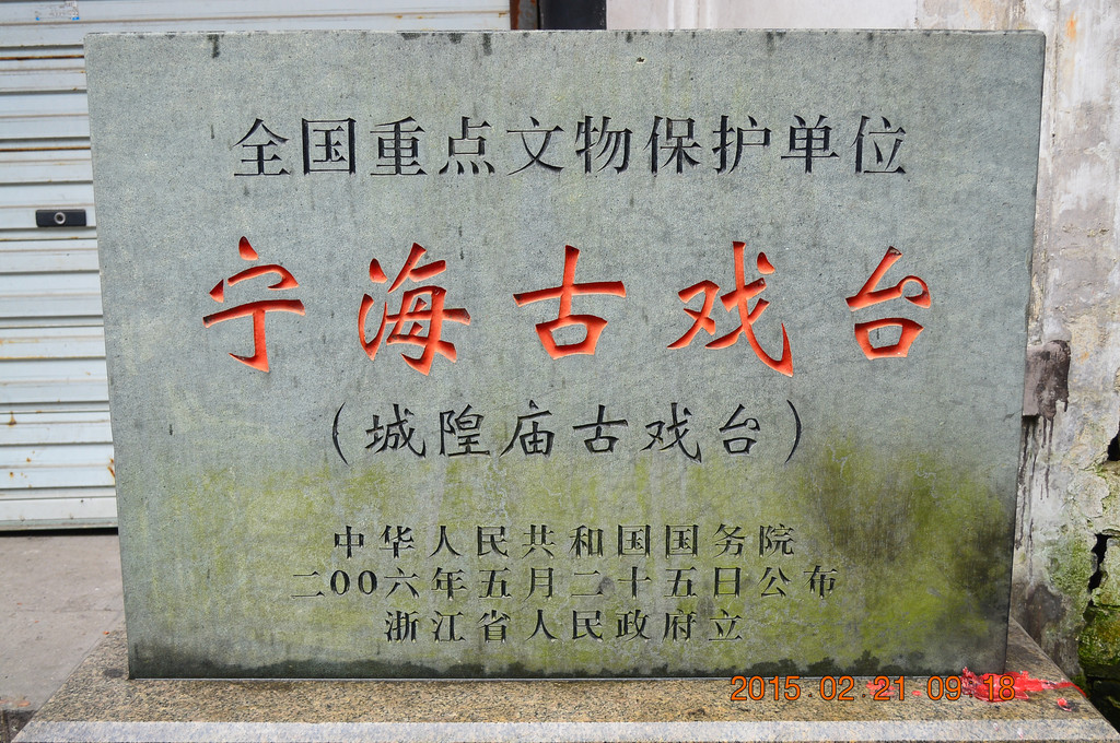 宁海古戏台,国务院2006年5月25日公布的第六批全国重点文物保护单位,古建筑类,时代清至民国。这是一处打包获评的国保,多数古戏台在乡村中,城隍庙古戏台是县城中唯一列入的。可惜,此处不对外开放。