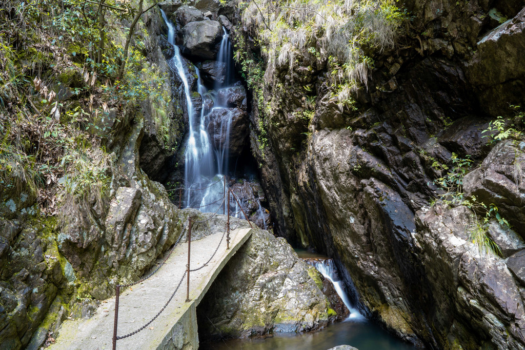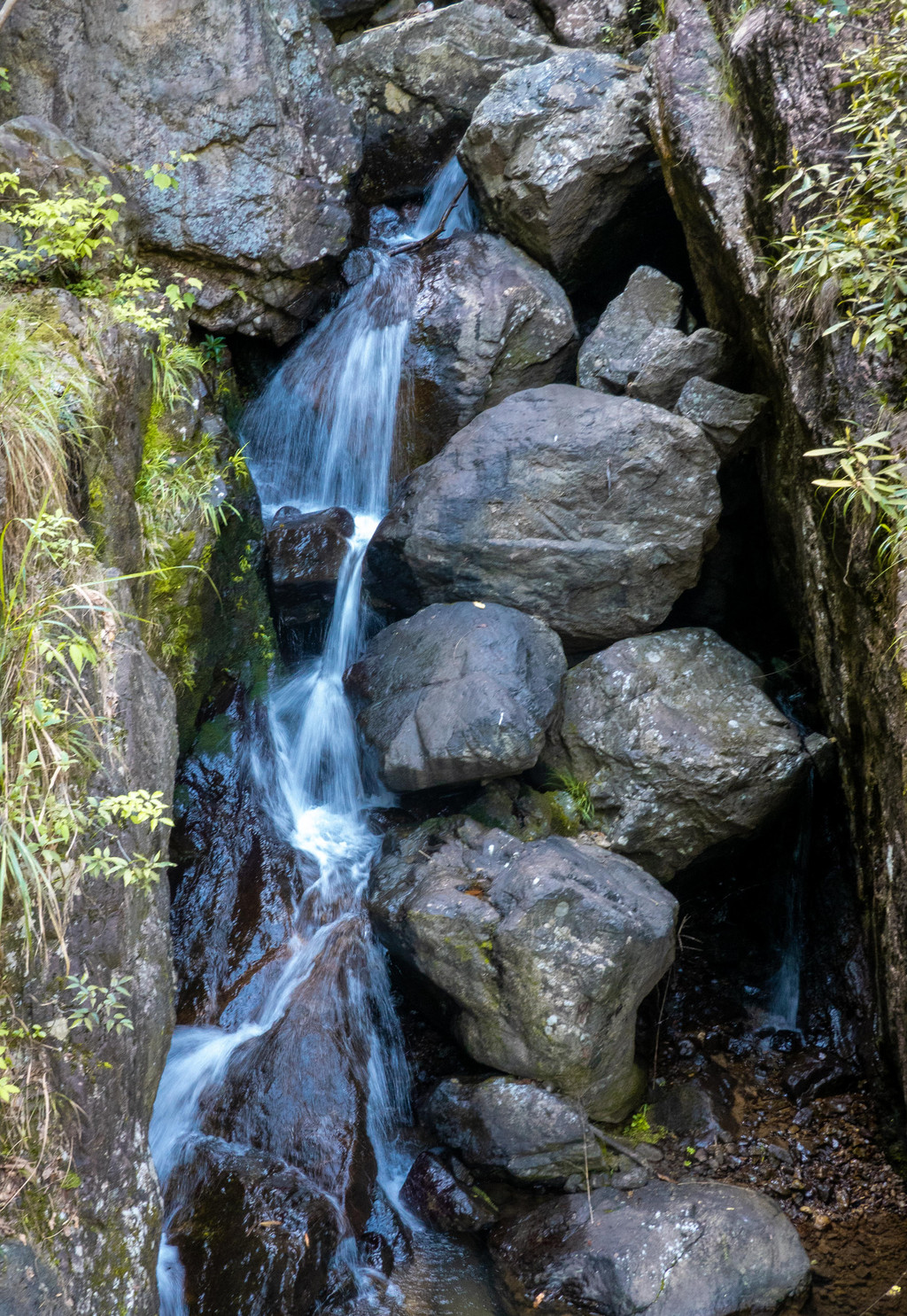 都说这梁皇山的水资源极为丰富,从北线一路上行,数十条大小瀑布从山壁岩崖间飞泻而下,最为气势恢弘的当属“悬空大瀑布”,远远就能望见山巅之上银河飞落,落差高达300多米,可谓山中奇景。而我认为最美的算是“三线瀑”吧,岩石叠嶂,急流无数银花飞散,水珠溅玉,水雾弥漫,一泓碧水清得令人舒心。