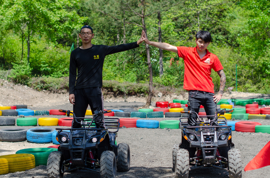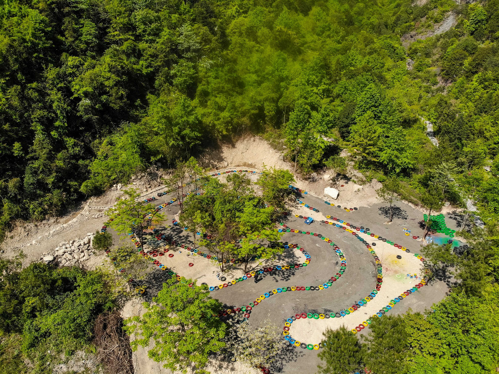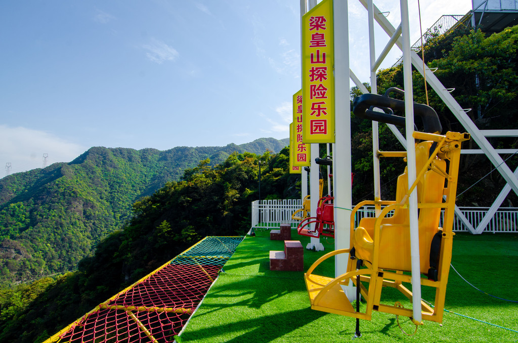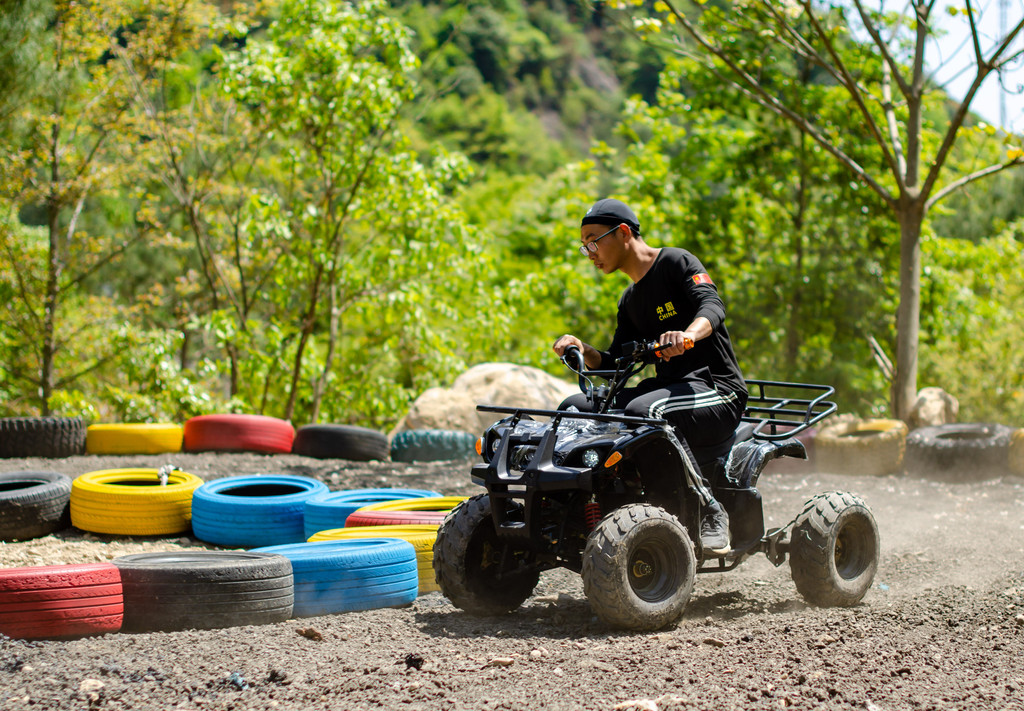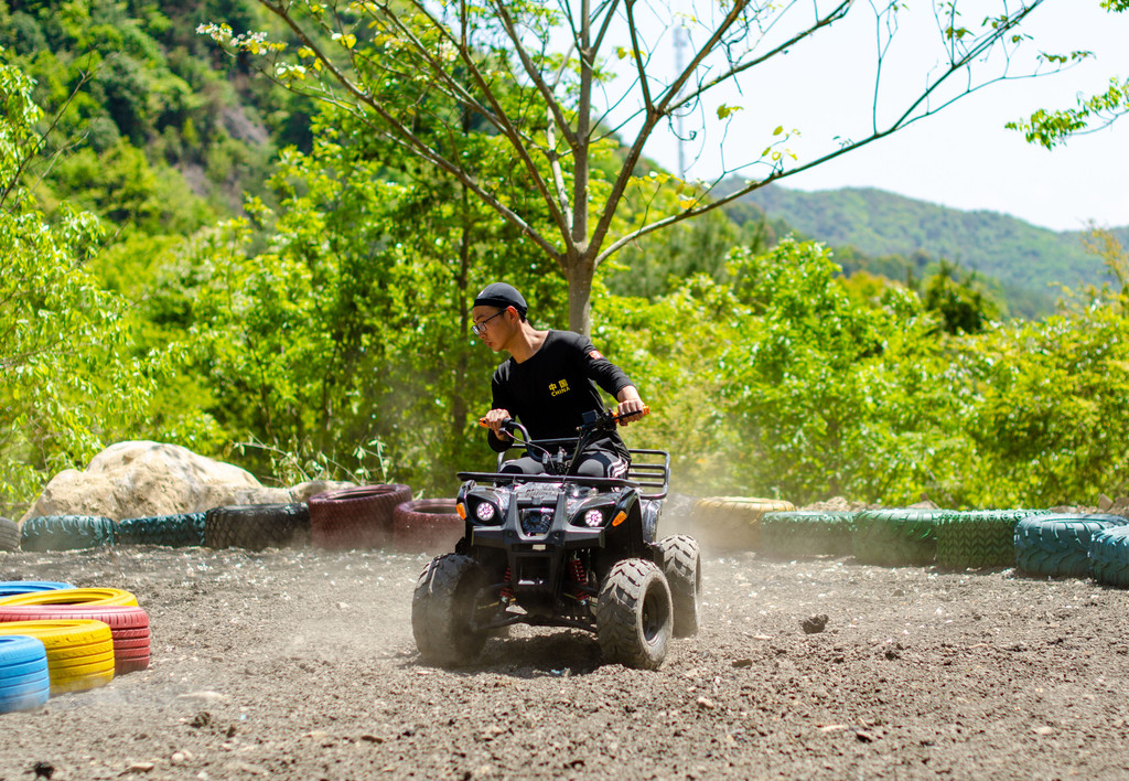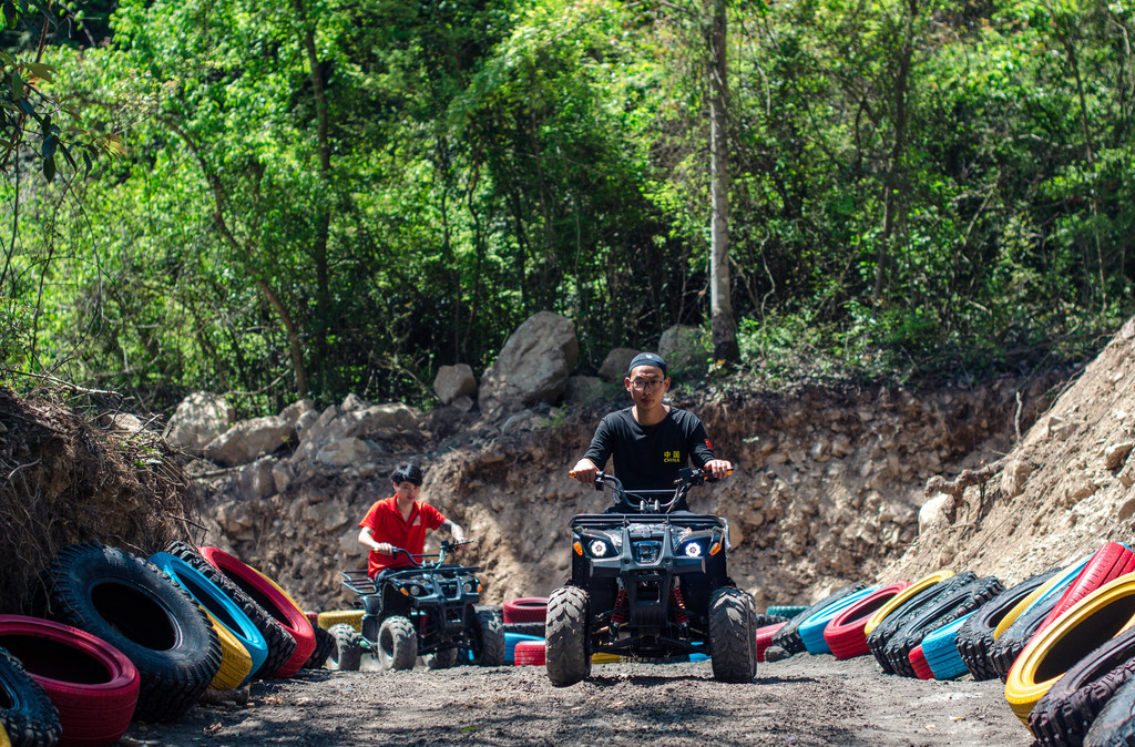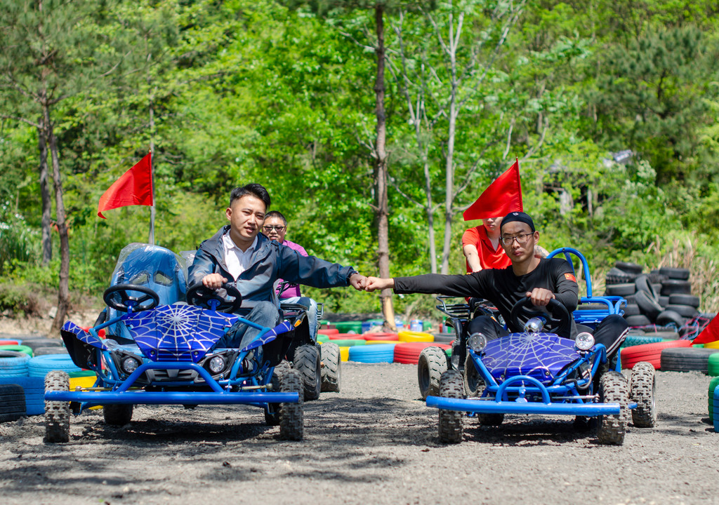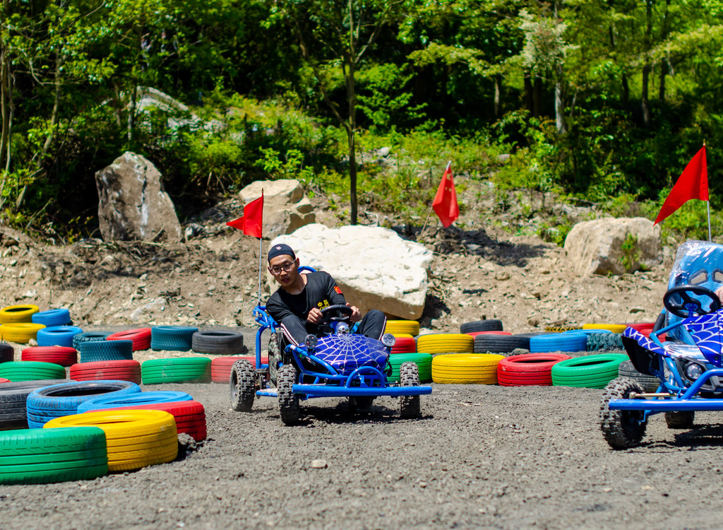 我们经常能在乐园里或者是一些露天的野营里看到卡丁车这样的项目,但是在梁皇山,它完全是依靠着山水之色来搭建的乐园。