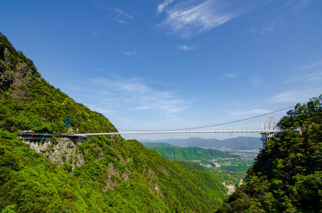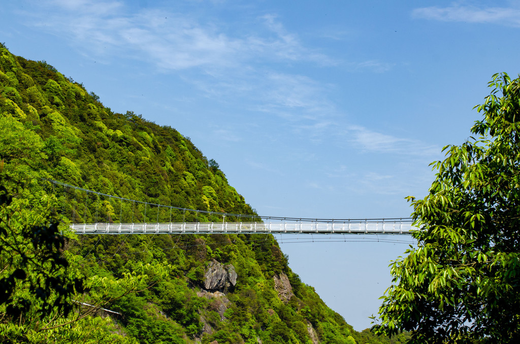 在我到达这廊桥的一端时,我便知道这段行走在云端的感觉一定不一般。横跨在两山之间的这条廊桥,脚下便是这梁皇山的全貌,每走一步你都可以清晰可听自己的脚步声和这摇摇晃晃的刺激感。