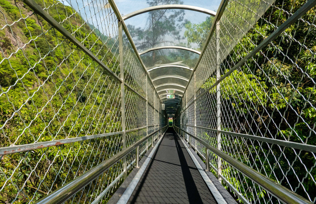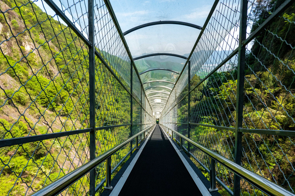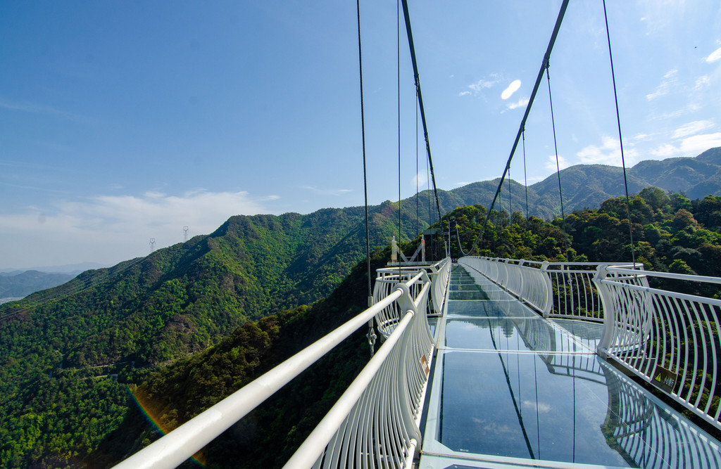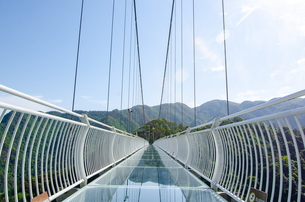 和高空漫步紧连着的便是这玻璃桥了,说起它,大家肯定都一目了然是什么项目。因为在各地大大小小的景区内,只要资源足够可能都会搭建这么一个玻璃桥,他们大多是跨山或者沿着崖壁而建,部分甚至加入5D特效,让玻璃桥更让人畏惧,来让游客亲身体验一番。