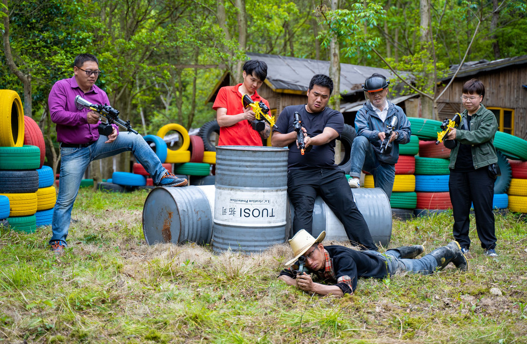 同样还是各色大型轮胎堆砌而成的“桩垒”,还有一些废弃的小木屋,可真算是1:1还原了那屏幕里的样子,除了实战,如果是爱好拍照的你,拿上这仿真水弹枪,倒是也能拍上一组显示你英姿飒爽一面。如果你还沉浸于手游的快乐,不妨就来这体验一把超真实又安全的水枪大战,叫上你的三五好友同行,谁是王者,战场见分晓。