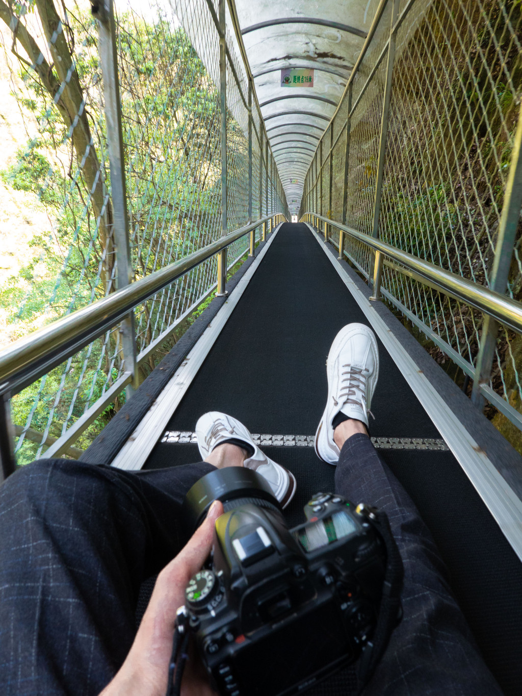 不知不觉这次来梁皇山的短暂旅行也快接近尾声了,体验完刺激的探险乐园,我们也便不舍下山了。这时候你可以选择走路下山,或者体验长约200米的玻璃滑道,像我这样具有冒险精神的,肯定会选择再刺激一番。