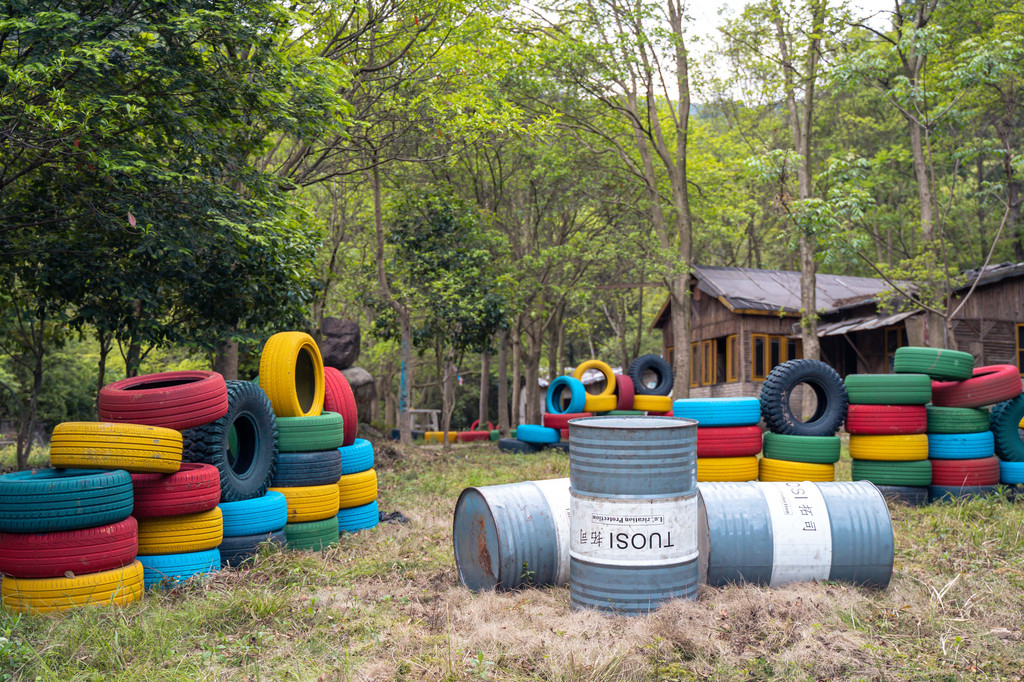 近百来个画上涂鸦色彩的大型轮胎环绕着葱葱郁郁的树摆出多个S型,坐上工作人员为你追备好的卡丁车,你便可以开始驰骋赛场了,每到一个卡口你甚至还能闻到淡淡的花香。还别说,第一次玩卡丁车的人会有一点找不着方向,石子路会让你有一定的阻力,但是多试几次以后便能游刃有余。