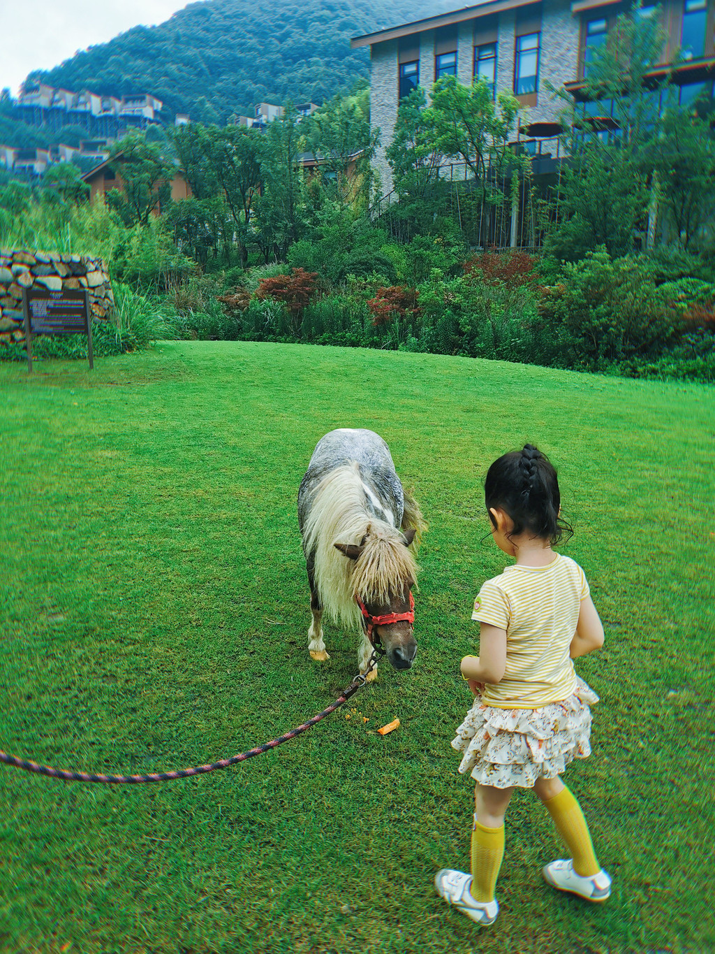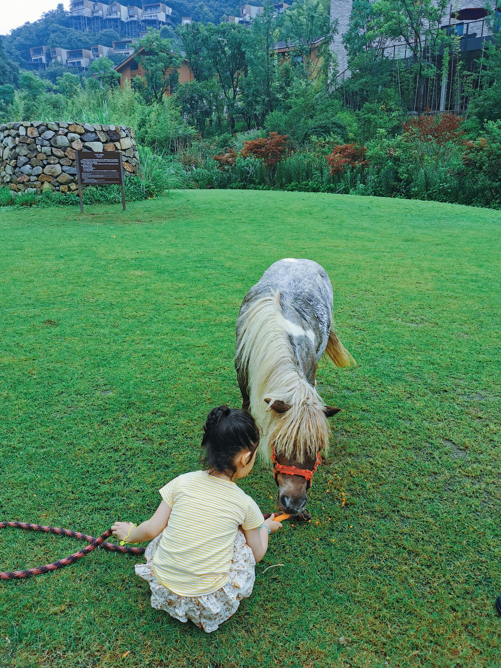 早餐后,让连续出差一周,凌晨到家第二日又开车的爸爸下岗,回房间休息,干妈们上岗,陪玩、欣赏玥舞蹈、带玥牵马喂马…