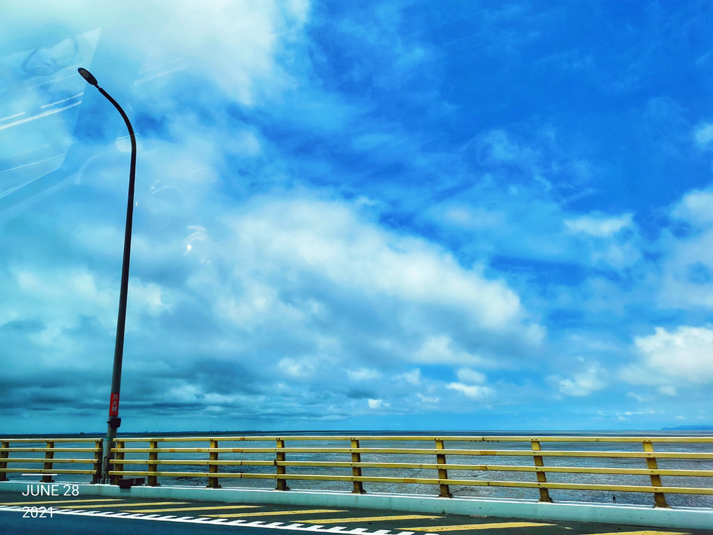 上海出发,自驾四个小时,经杭州湾跨海大桥,有时暴雨,有时晴。