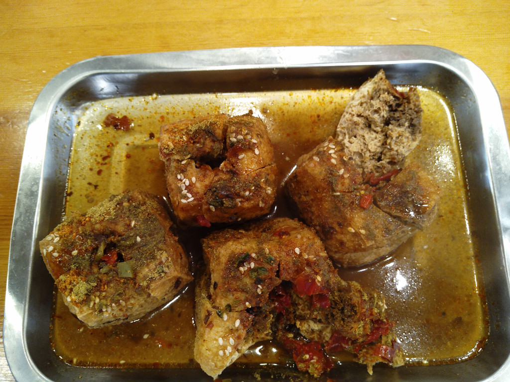 这可能是很多大理人从小吃到大的早餐,大街小巷路边摊随处可见。大理的饵块一般分为两种,一种是卷卷饵块、一种是手揉饵块。两种都是烤制而成。卷卷饵块是将制成的饼状饵块放在火上烤至,然后抹上各种酱料,撒上素菜、花生碎和肉酱,也可以选择加上火腿肠、油条或者卤蛋,卷在一起,当然你要是食量OK的话,也可以选择全部加入,吃一个“全家福”大快朵颐;手揉饵块则多见于古城,用半成品现做成饼状,把酱料放在中间然后包起来做成饺子型,放在火上烤制,可以选择咸味或者甜味。