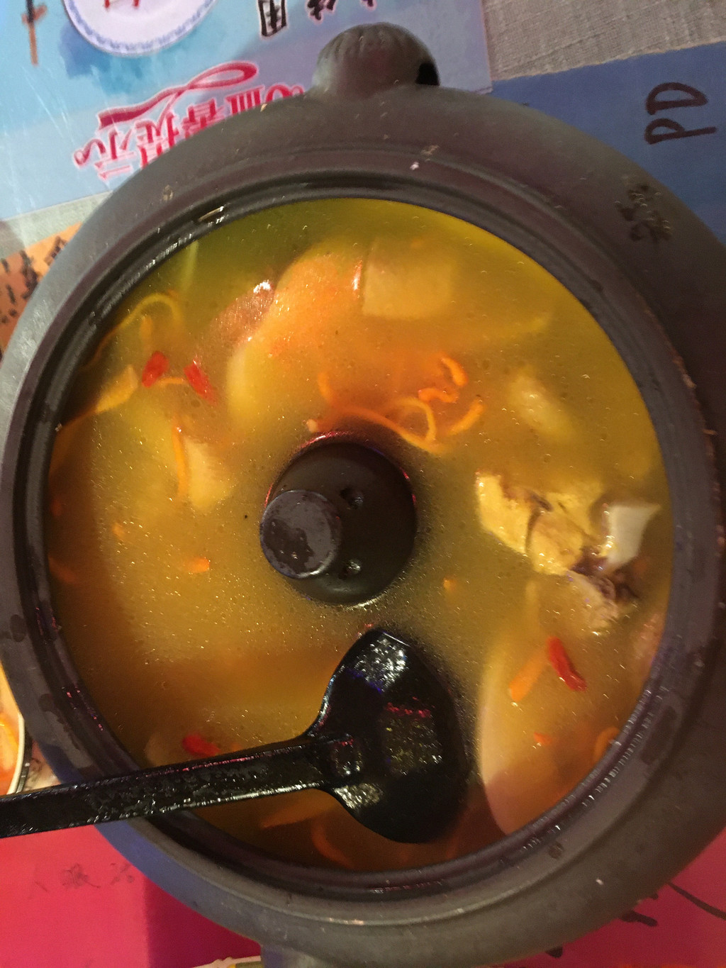 丽江汽锅鸡,汽锅鸡是云南的名菜之一,早在2000多年前就在滇南民间流传。建水出产一种别致的土陶蒸锅,叫“汽锅”,是专门用来蒸食物的。汽锅鸡的做法是钭仔鸡洗净后在砍成小块,和姜、盐、葱、草果一道放入汽锅内盖好,汽锅置于一放满水的汤锅之上,用砂布将隙缝堵上,以免漏汽,再放到火上煮。汤锅的水开后,蒸汽就通过汽锅中间的汽嘴将鸡逐渐蒸熟(一般需3 ~4小时)。由于汤汁是蒸汽凝成,鸡肉的鲜味在蒸的过程中丧失较少,所以基本上保持了鸡的原汁原味。吃起食客的赞誉。如果在汽锅中分别加入云南出产的珍贵药材“三七”、“虫草”、“天麻”、就叫三七汽锅鸡,虫草汽锅鸡,天麻汽锅鸡。这不仅增加了营养价值,能滋补强身,而且对体弱、头昏、管力等症还有一定作用,对冠心病、神经衰弱等具有疗效。 制作过程 汽锅鸡,因用汽锅蒸制而得名。昆明南部建水出产的紫陶汽锅,采用当地的红、黄、青、紫、白五色陶土制成,具有“色如紫铜,声如罄鸣,光洁如镜,永不永不褪色” 的特点。