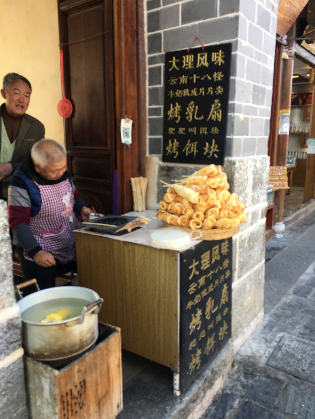粑粑也是大理的特色小吃,其实也是烤饼的一种,有咸甜两种口味,以喜洲粑粑最为出名,一个就已经很顶饱,油也比较多,建议最好是和朋友分着来吃,不然就不够肚子吃其他的了。