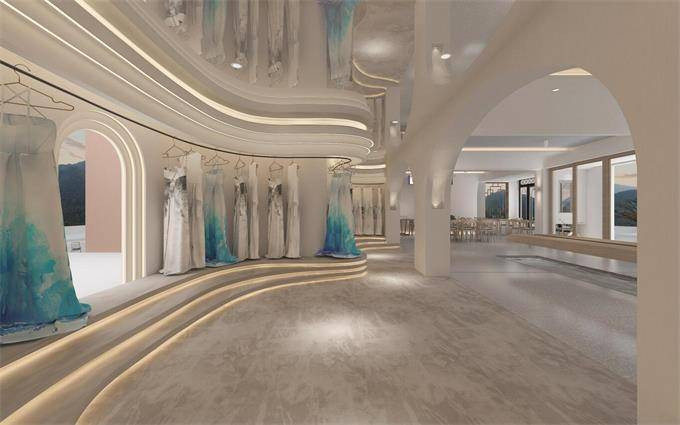 进入通透敞亮的公共空间。映入眼帘的是大厅的服装区域,几十套各种颜色,各种风格的衣服可随意挑选。