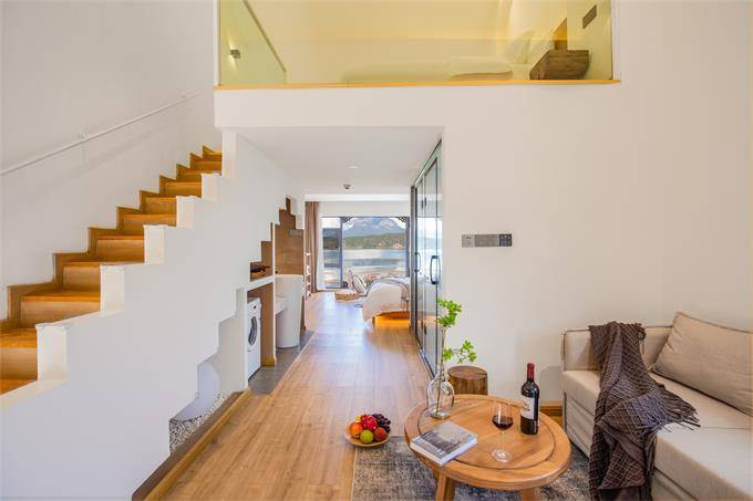 loft四人套房,私密又有观赏性,透过窗户眼前的泸沽湖美酒不失为一种山水画的风韵。
