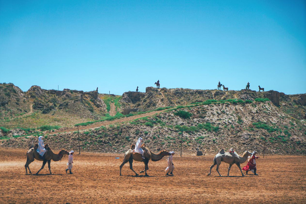 出了鸵鸟乐园,坐上悠悠驼车,听着驼车大爷雄厚的嗓音,不久就来到水洞沟景区不能错过的北疆天歌演出场地。