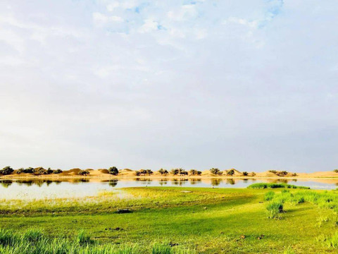 从通古卓尔苏木接待站进入沙漠6公里左右,首先抵达的是天鹅湖。每年的3、4月和9、10月,会有众多的天鹅在此栖息,故名为“天鹅湖“。