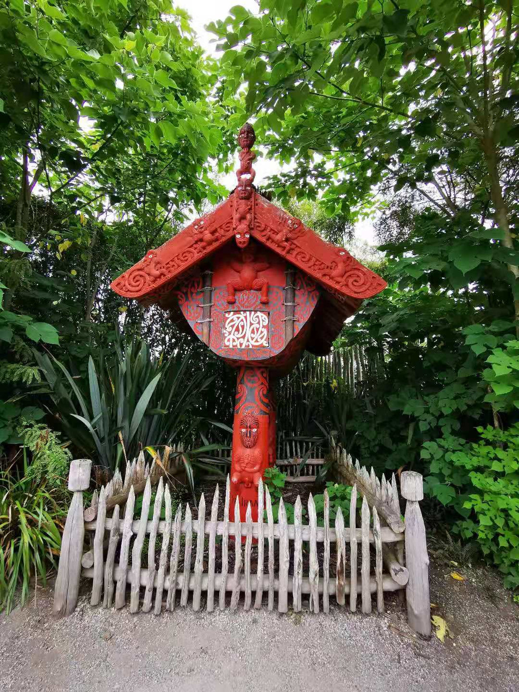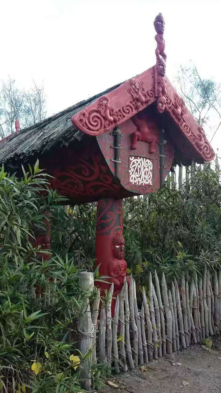 转了好久,终于从玫瑰园出来了!我们来到了毛利园,目睹了毛利的系列文化。主园并不大,一个大大的带有毛利图腾的标志建筑物伫立眼前。