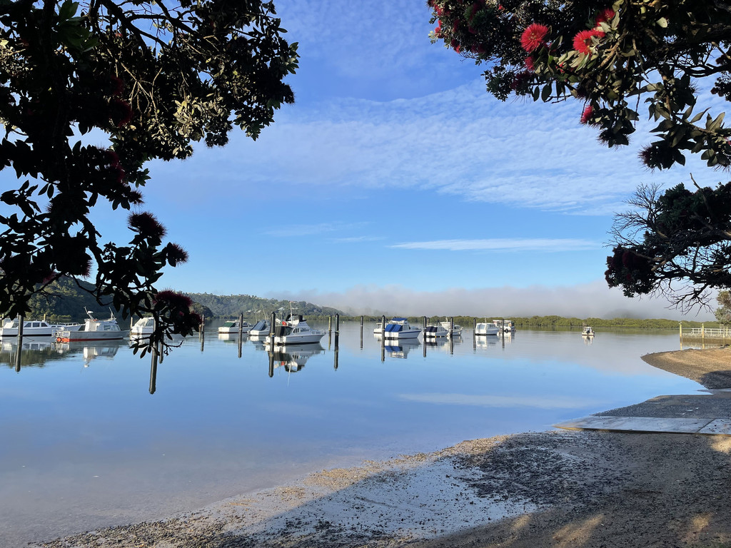 早晨去附近转转,去山上看看Bay Of Islands,上山全是晨雾,景色尽在缥缈在。山下的水面平如镜,映衬着蓝天很是漂亮。Haruru Falls水头不高,声音还挺大。