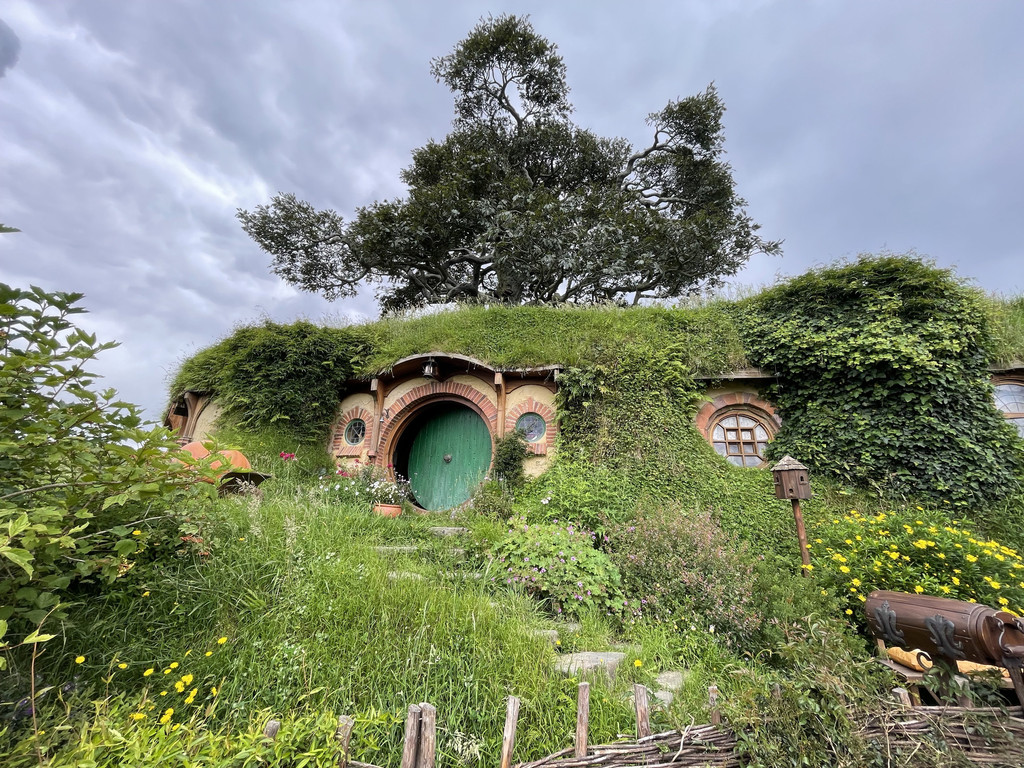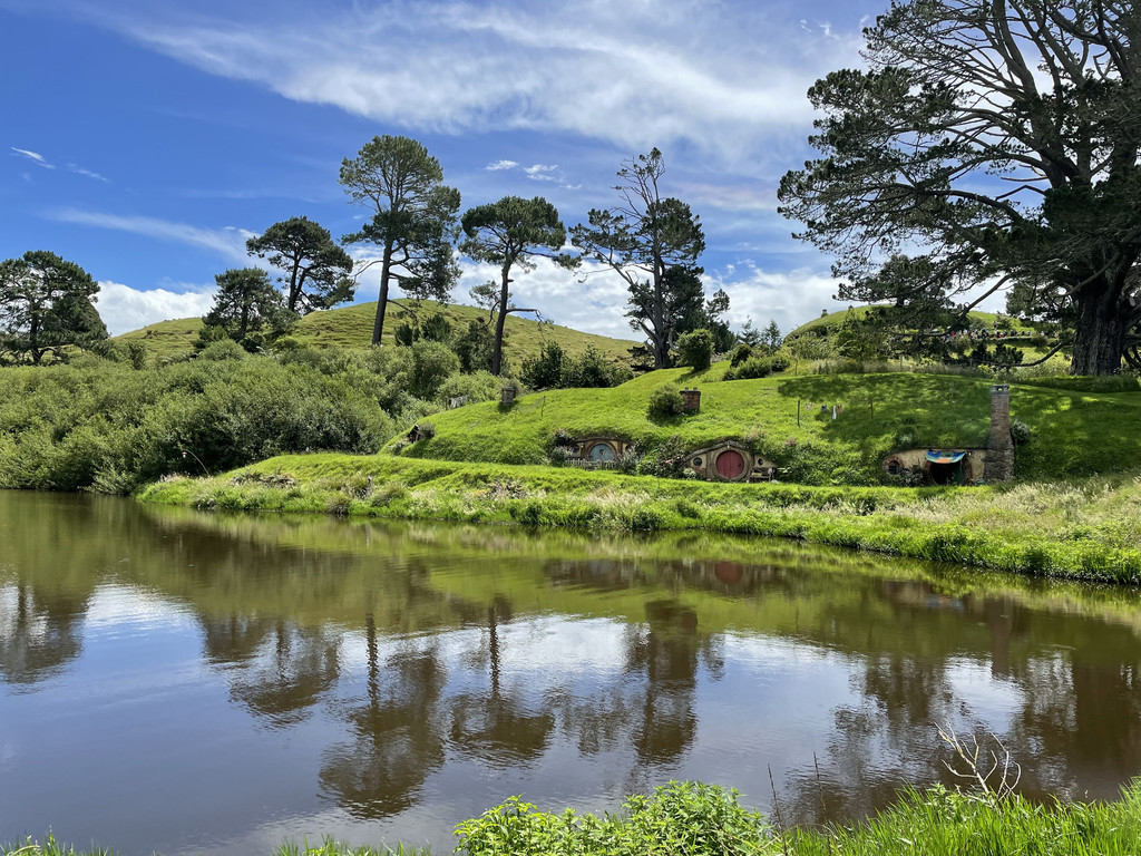 然后去霍比特人村Hobbiton Movie Set Tours(2人门票$133),就是一个影视基地,由导游带着参观。其实魔戒电影里霍比特村的内容很少。Blue Springs要走比较多的路,没有走到,但是看到了长满水草的清清河水。距离:145KM,车程1小时40分钟。