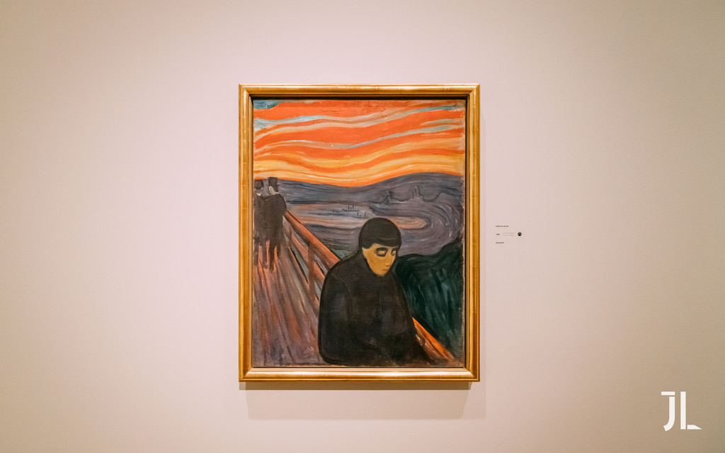 你能从蒙克的画中,读出他挣扎于孤独、焦虑与死亡的漫长过程,而若你细读那些作品的创作年份,会发现这些情绪暗流贯穿了他的大半生,这些情绪也反映了19世纪末20世纪初奥斯陆的都市变迁、宗教压抑与工业化带来的迷惘。但他画的真的太好了,看到后面你不忍心再看下去,那些通过细腻笔触和夸张表达所反应的情绪,溢出画纸,侵入每一个观众的心。《呐喊》系列中那一道道扭曲的河岸线和狰狞的表情,而《病中的女孩》系列,那病床上苍白、孤绝的身影,则透出了深深的无力。