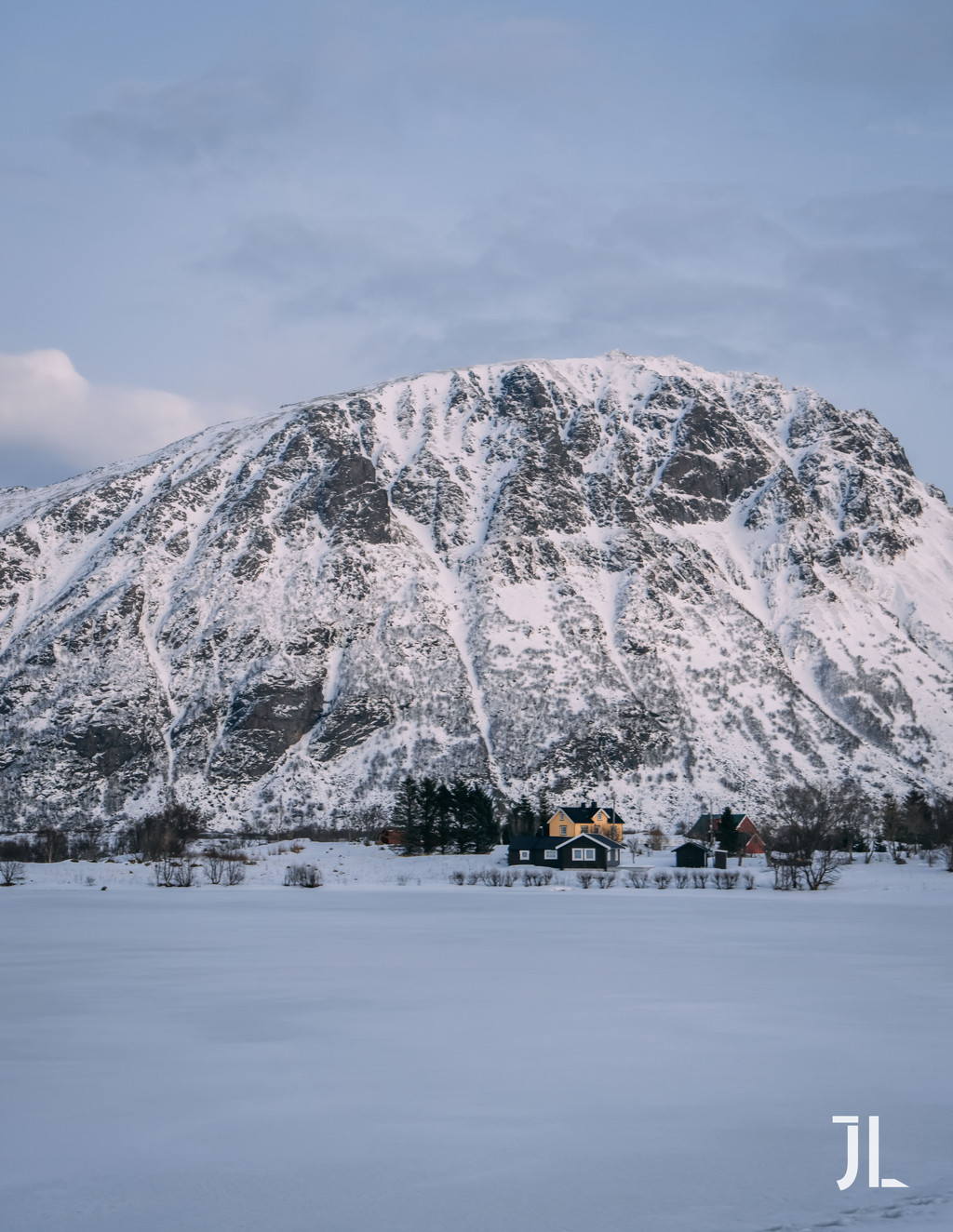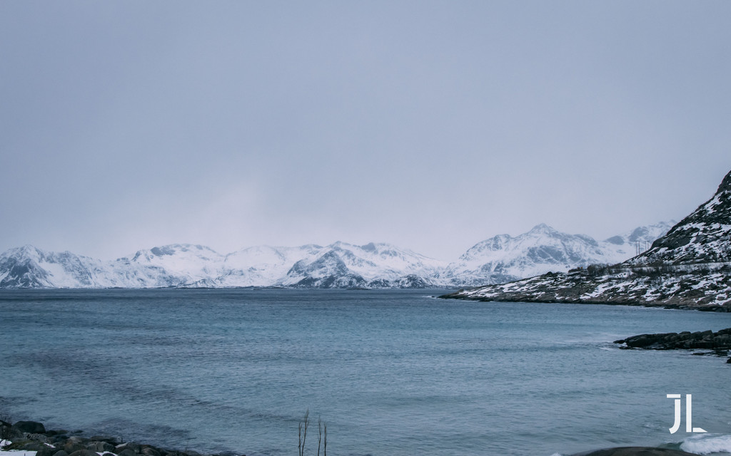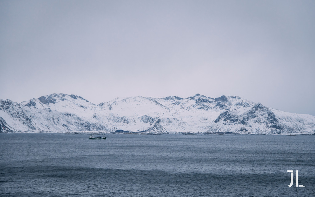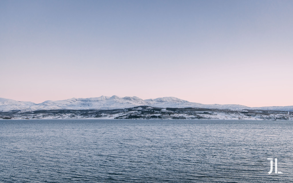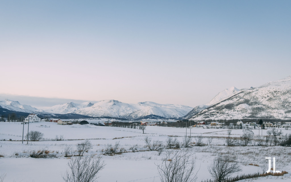 不过这一路还是有所耽搁,毕竟过了三点半天就黑了,我开始患上一种轻微的焦虑,一种只在冬日的极北才会出现的时间紧迫感,这一路边开边停边拍,生怕错过冬令时原本就不多的一丝一毫的景色,它们实在太美了,那种静默无声的壮丽,群山、海湾、月光与雪地交叠成画,贪婪的按下每一个快门,就好像每一张都是最后一张。